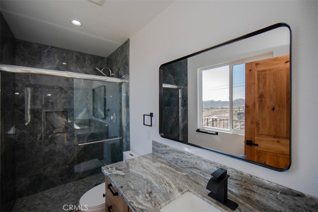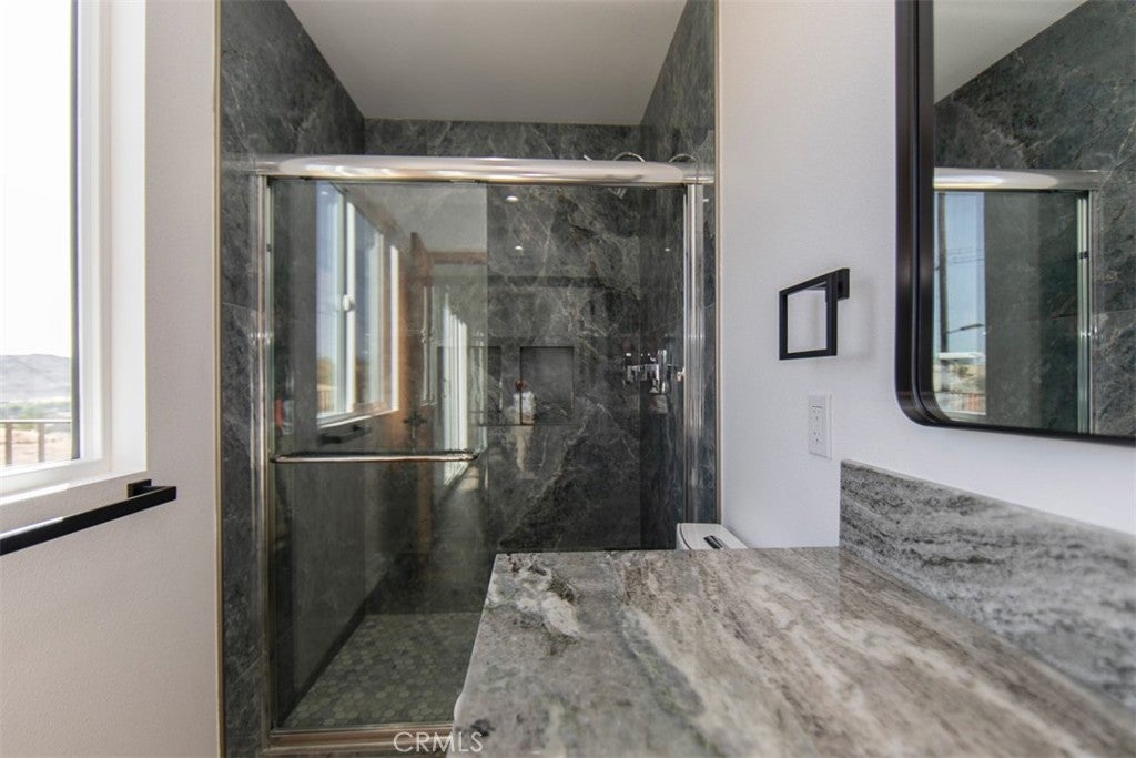 $459,500 – Improved Price! Open House Sunday, November 9th, 1:30–4 PM Brand-new modern home with dual primary suites, solar, and designer kitchen. Step into comfort, style, and functionality with this stunning two-story residence in the heart of Victorville. Thoughtfully designed for modern living, this 4-bedroom, 3.5-bath home features two private main suites—one conveniently located on the first floor with a cemented pad just outside the bedroom, ideal for a future pergola or shaded sitting area, and another upstairs with added privacy. The open floor plan showcases cathedral ceilings, abundant windows, and a seamless flow between living, dining, and kitchen spaces. The chef’s kitchen includes an industrial-grade 6-burner gas stove, Sub-Zero-style refrigerator, built-in microwave, dishwasher, stainless steel sink with disposal, and granite countertops for a refined finish. Luxury continues throughout with granite countertops in all bathrooms, ceramic tile showers with waterfall showerheads, dual-flush toilets, and durable laminate flooring. The home is all-electric except for the gas stove and includes owned solar panels for long-term energy savings. Additional features: EV charger, security cameras on all four sides, central air and heat, and a full alarm system. The two-car garage leads to a cemented walkway and elevated front terrace that serves as the main entrance. The terrace provides a comfortable outdoor area for lounging or enjoying the evening breeze. The property is fully enclosed with a new vinyl fence for privacy and includes young trees for shade and landscaping potential. This is not just a home—it’s a turnkey retreat blending modern design, energy efficiency, and spacious indoor-outdoor living. Join us for the Open House this Sunday, November 9th, from 1:30–4 PM, and see the difference quality and design make!