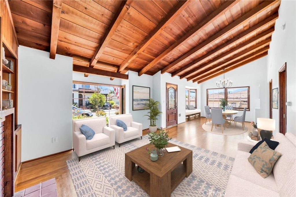 Don’t miss this exceptional opportunity to own a timeless piece of historic La Jolla, nestled in the prestigious and highly desirable Beach-Barber Tract — a coastal enclave where classic charm, walkable beachside living, and modern comforts converge. Just a few picturesque blocks from the shimmering Pacific Ocean, this single-level 1,107 sq. ft. gem captures the essence of Southern California living at its finest. Step inside and be welcomed by soaring vaulted open-beam wood ceilings and richly finished hardwood floors that radiate warmth and character. The inviting living room is anchored by a traditional brick fireplace and accented with built-in shelving—perfect for displaying treasured keepsakes or curating a relaxing reading nook. Bathed in natural light from a large bay window, the thoughtfully updated kitchen offers ample counter space, abundant cabinetry, and a cheerful atmosphere ideal for both everyday living and entertaining. The remodeled bathrooms feature elegant stand-alone showers and chic finishes that echo the relaxed, coastal aesthetic. Additional features include a convenient indoor laundry nook, a sun-drenched backyard deck perfect for al fresco dining or lounging, and a classic brick exterior that enhances the home’s enduring curb appeal. Set on a spacious lot, this home presents a rare opportunity to create a dream coastal sanctuary in one of La Jolla’s most beloved neighborhoods. Whether you're seeking a serene primary residence, a stylish vacation home, or a savvy investment, this property offers endless potential in an unbeatable location—just minutes from pristine beaches, upscale boutiques, and world-class dining. Opportunities like this are few and far between in today’s super competitive La Jolla real estate market—act quickly to make this exceptional property your own.
