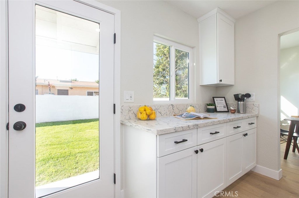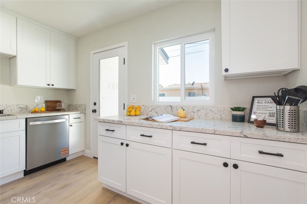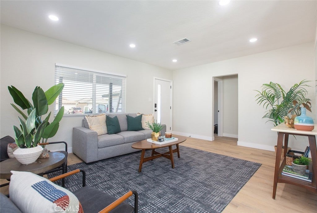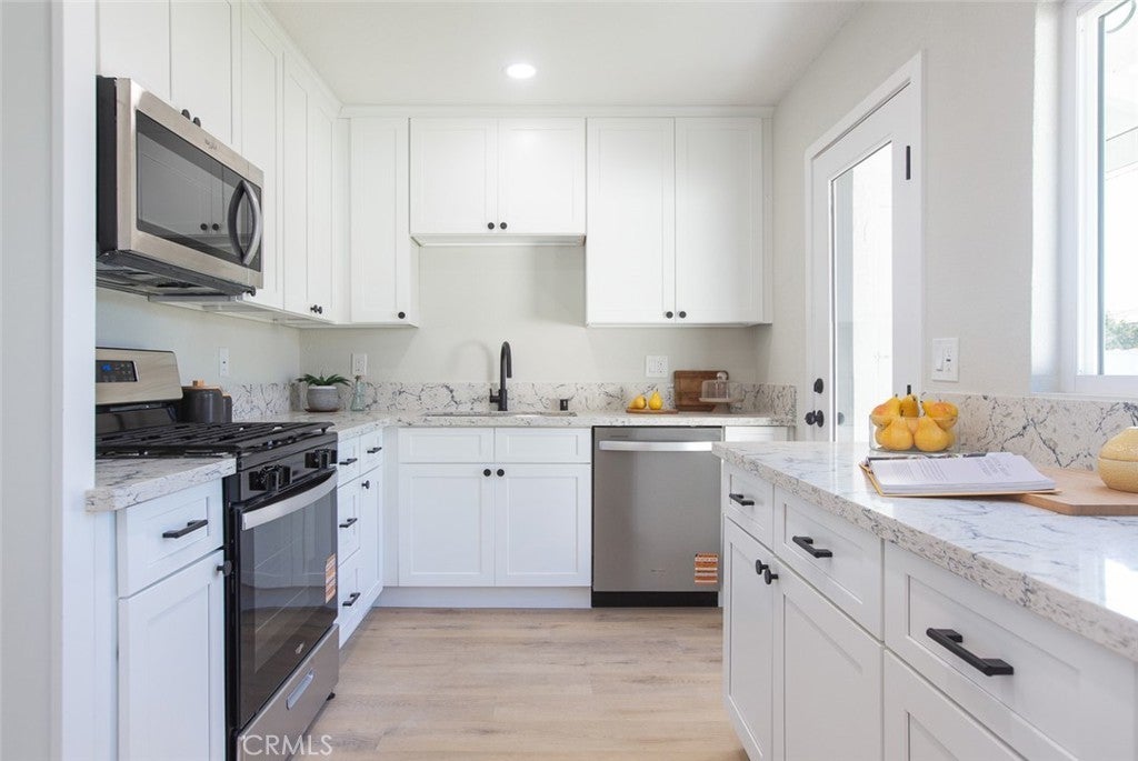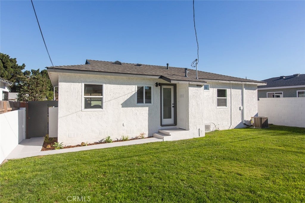 Beautifully RENOVATED 3-bedroom, 1-bathroom home with approximately 1044 square feet of living space and situated on 5015 square foot lot. The home has beautiful curb appeal with a freshly landscaped front yard and inviting front porch. The updated kitchen has new cabinets, sleek new counter tops, new stainless-steel appliances, and stylish new plumbing and lighting fixtures. The bathroom has a new vanity, new fixtures and custom tile work. Other features include a new HVAC system, new energy efficient vinyl windows, new roof, freshly painted interior and exterior, luxury flooring in common areas and bedrooms, new upgraded electrical panel, and indoor laundry for your convenience. There is a spacious 2 car garage with additional off street driveway parking. The private enclosed backyard has a spacious lawn area perfect for outdoor fun and entertainment. Portion of damaged wall currently being removed and will be replaced with new fencing.