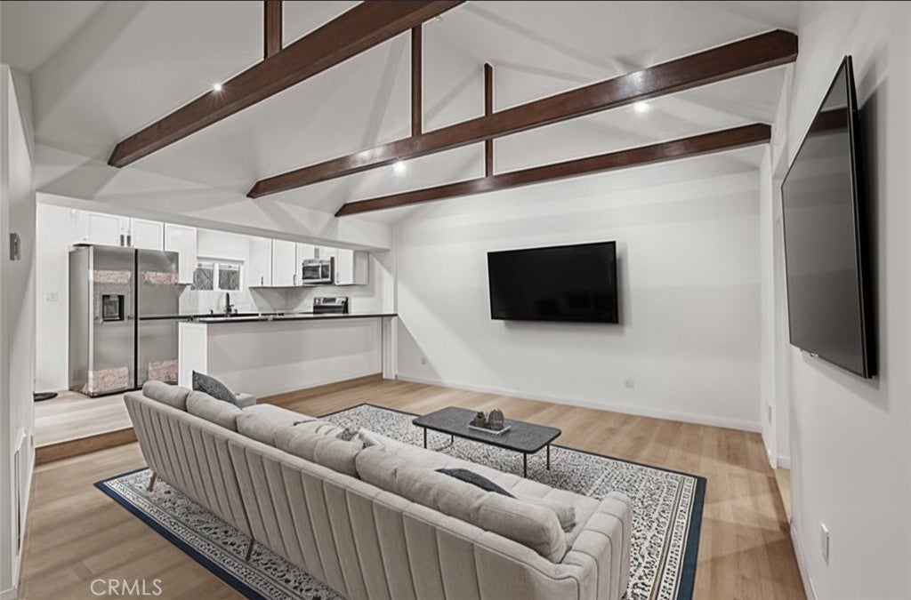 Beautiful Modern Cabin with private LEVEL PARKING just minutes away from LAKE GREGORY and located in the desirable city of Crestline! This home consists of 1 Bedroom, 1 Bathrooms, and a large living room with high ceilings. All new kitchen cabinets with QUARTZ countertops. The Kitchen comes with a brand-new Refrigerator, Gas Stove and Oven, Microwave and even Dishwasher! Whether you are looking for a getaway home or looking to live here full time this home is less than a short 20-minute drive down the mountain! A must see to truly appreciate. Some photos have been electronically staged. Schedule your private showing today!