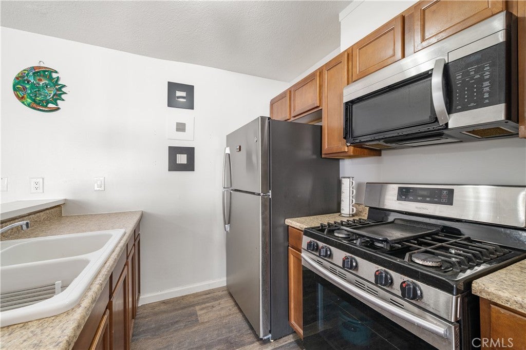 Welcome to this stylishly updated 2-bedroom, 1-bathroom condo nestled in the heart of Canoga Park. This light-filled home offers modern touches throughout, including fresh paint, upgraded flooring, and a nice kitchen as well as stainless-steel appliances. The spacious living room flows seamlessly into the dining area, creating the perfect space for entertaining or relaxing. Both bedrooms are generously sized with ample closet space. Situated close to shopping at Westfield Topanga & The Village, local parks, and dining options, this condo combines style, comfort, and convenience—perfect for first-time buyers.