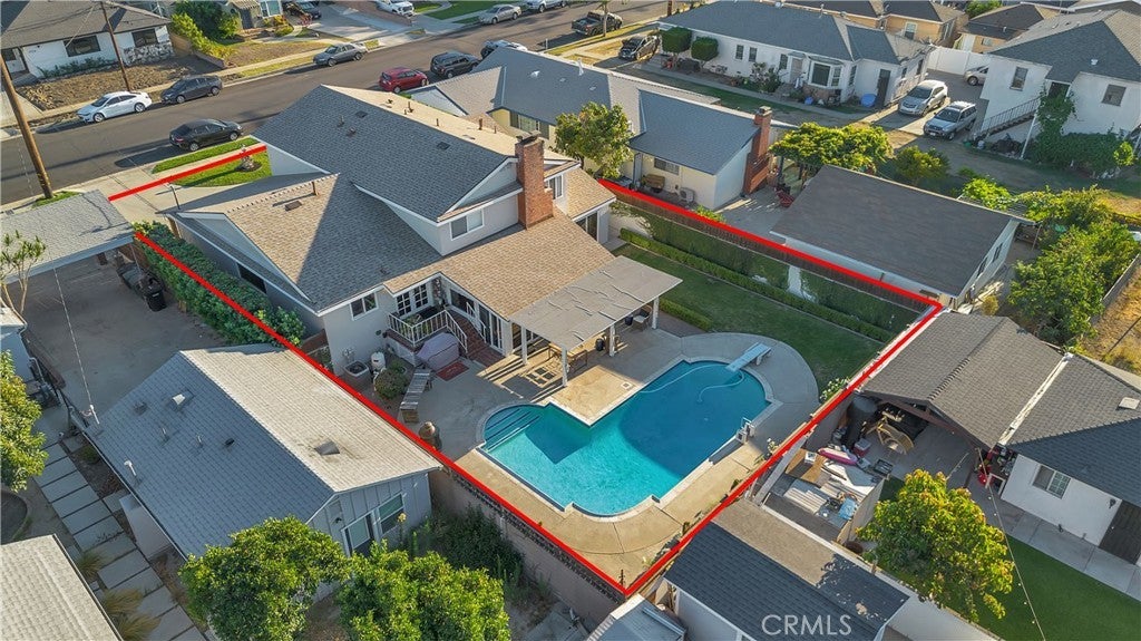 A Home with History, Heart, and Endless Possibilities in Bellflower! Step into a piece of Southern California history, originally owned by the first Taco Bell franchise owner in 1965, this one-of-a-kind tri-level residence offers over 2,700 sq. ft. of timeless charm and modern potential — a home designed for both everyday living and entertaining. Inside, warm wood floors and classic banister rails welcome you with character and grace. A half flight up, the formal living and dining rooms are bathed in natural light from oversized windows, creating the perfect backdrop for holidays, celebrations, and intimate gatherings. At the heart of the home, the kitchen with stone countertops and abundant cabinetry invites culinary creativity. On the lower level, discover an entertainer’s haven — a spacious den with a fireplace, wet bar, and direct access to the backyard retreat. Here, a sparkling swimming pool sets the stage for summer fun, and family memories. The upper level offers remarkable flexibility with dual master suites, including a fireplace and personal walk-in closet in the larger suite for luxurious and intimate living. An additional bedroom, and a full bath — an ideal layout for multi-generational living or overnight guests in comfort and privacy. Notable features include: Brand-new roof with 30-year composition shingles and new decking New attic ventilation with two new attic fans to ensure proper airflow Fully upgraded plumbing system, including new water and sewer mains, a backflow prevention valve, and new plumbing for all upstairs bathrooms and the kitchen Electrical system upgrades, including a new 200-amp electrical panel pre-wired for solar, a 100-amp sub-panel wired for EV charging and a 30-amp RV service, along with LED lighting throughout the property Low voltage landscape lighting throughout the backyard for a magical evening atmosphere 16 inches of blown insulation and insulated plywood decking on the roof for energy efficiency Whole-house alarm system for added security Expansive 3-car garage with ample storage options Circular driveway for both convenience and curb appeal Bonus room perfect for a gym, studio, or game room ADU potential for extended family living or added income Blending rich history with modern amenities, this remarkable property isn’t just a house — it’s a legacy waiting for its next chapter. With its flexible floor plan and rare features, this Bellflower gem is truly one of a kind.