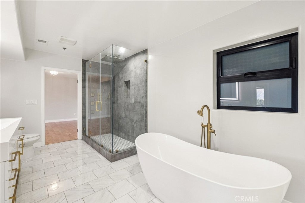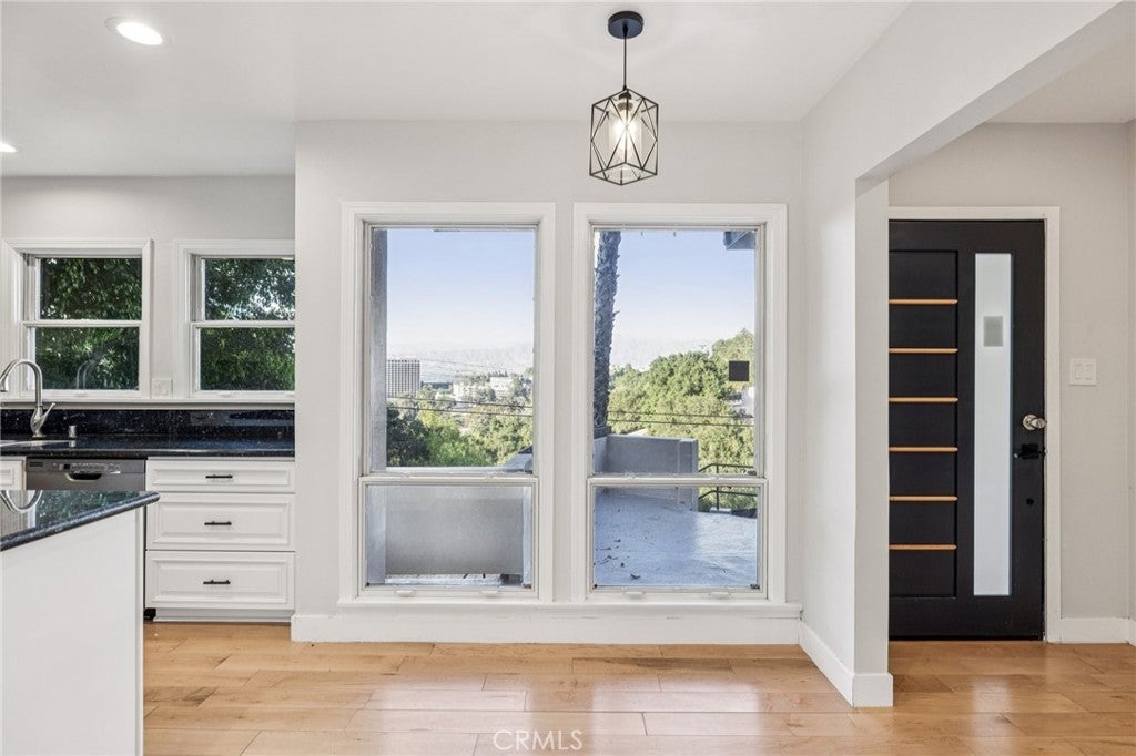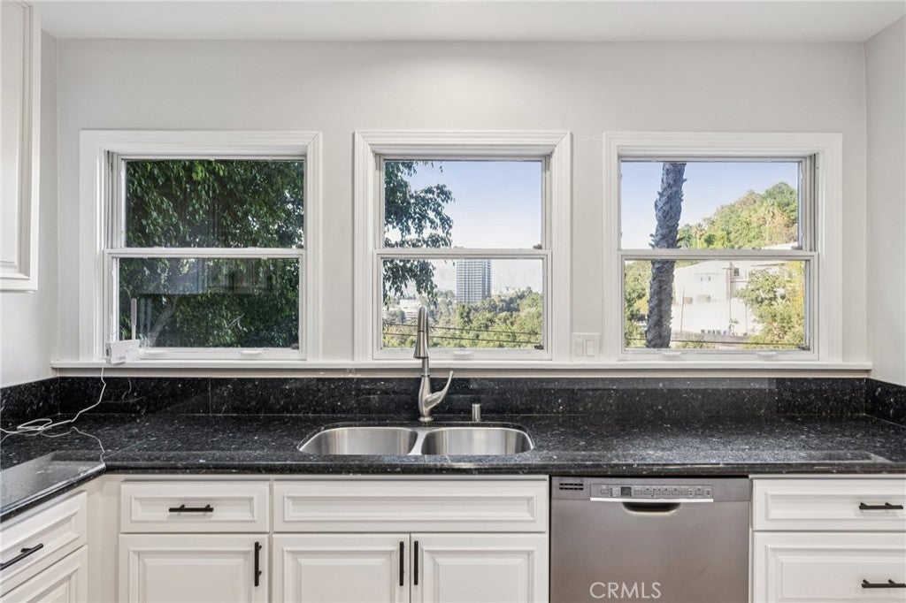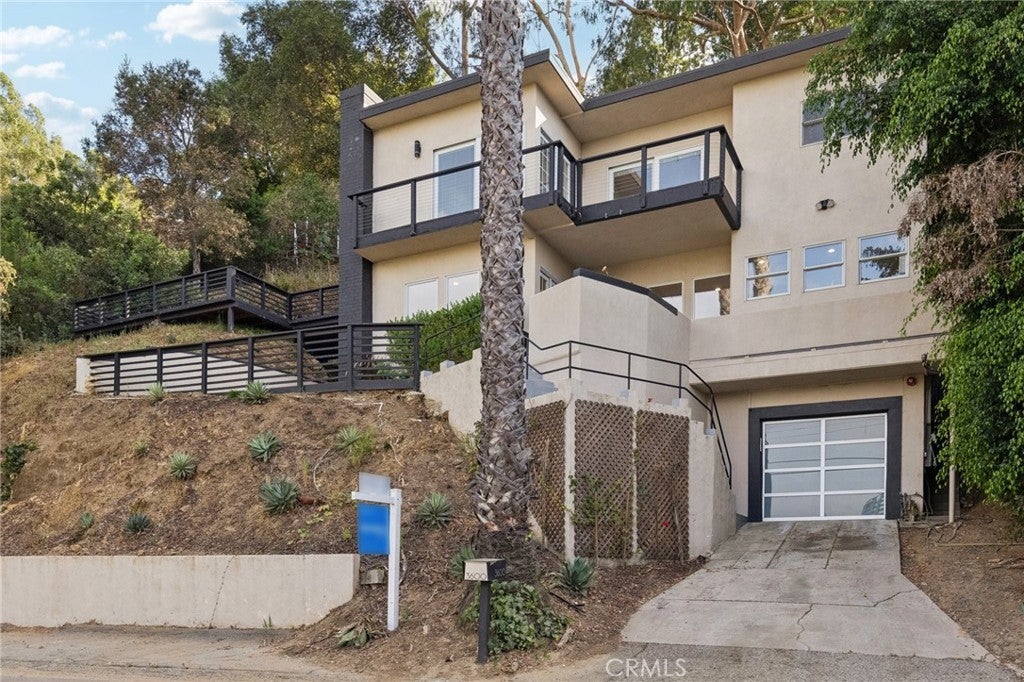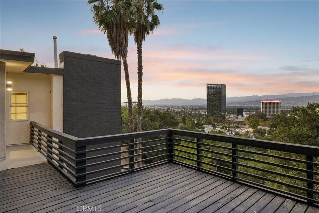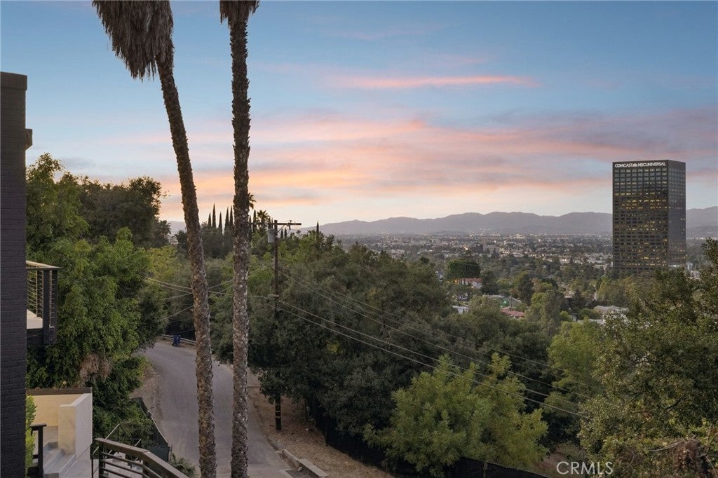 Flooded with natural light and framed by expansive windows, this Hollywood Hills residence offers a rare combination of privacy, space, and city views. The main level features a bright open living area with a sleek fireplace, an updated kitchen with granite counters, stainless steel appliances, and a center island, plus two bedrooms and a full bath. Upstairs, a luxurious primary suite spans nearly the entire level with spa-inspired bath, generous closet space, and direct access to a balcony showcasing sweeping canyon, mountain, and city-light vistas. Additional rooms provide flexibility for guest accommodations, office, or creative space, while multiple decks and terraces create seamless indoor-outdoor flow. Set in a quiet hillside pocket just minutes from Mulholland, studios, and the heart of Los Angeles, this home delivers the lifestyle of a private retreat with the convenience of city living.