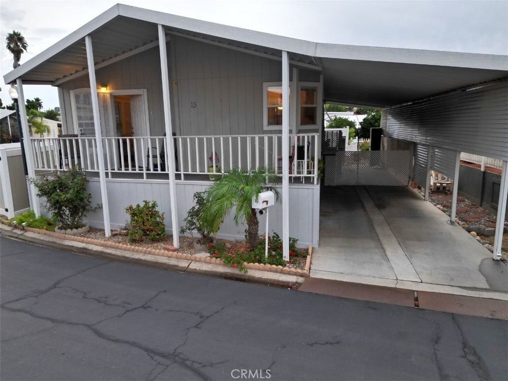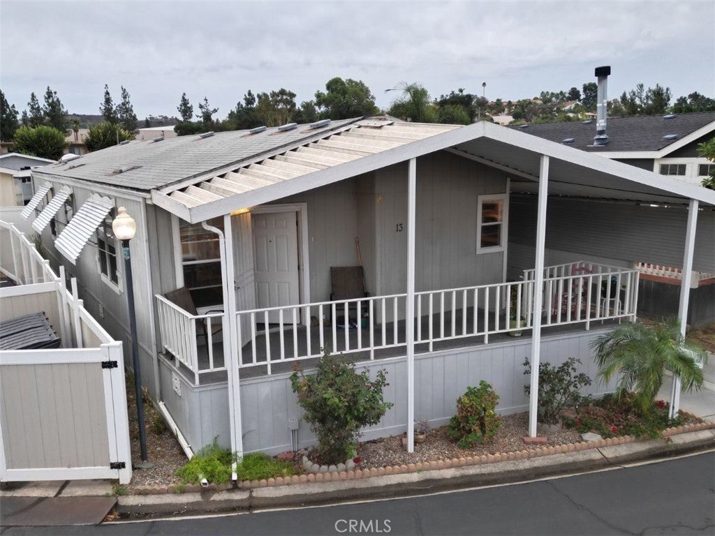 Welcome to Casa Grande Estates, one of Escondido’s most desirable 55+ communities! This well-maintained home offers a spacious floor plan with 2 bedrooms plus a versatile den—perfect as an office, hobby room, or easily converted into a 3rd bedroom. High ceilings, skylights, and large windows fill the interior with natural light, creating an inviting and airy atmosphere. The kitchen is designed with plenty of cabinet and counter space, complemented by a pantry, center island, up-to-date appliances, and a reverse osmosis system for purified drinking water. A whole-home water softener adds extra comfort and convenience. The primary suite features a private bathroom with an oversized shower and soaking tub. Additional highlights include central A/C, ceiling fans, full laundry room with washer/dryer, and fresh updates throughout. Outside, enjoy a covered front porch, fenced yard ideal for a small pet, and a storage shed for extra convenience. Covered parking for two vehicles is included, with guest parking nearby.