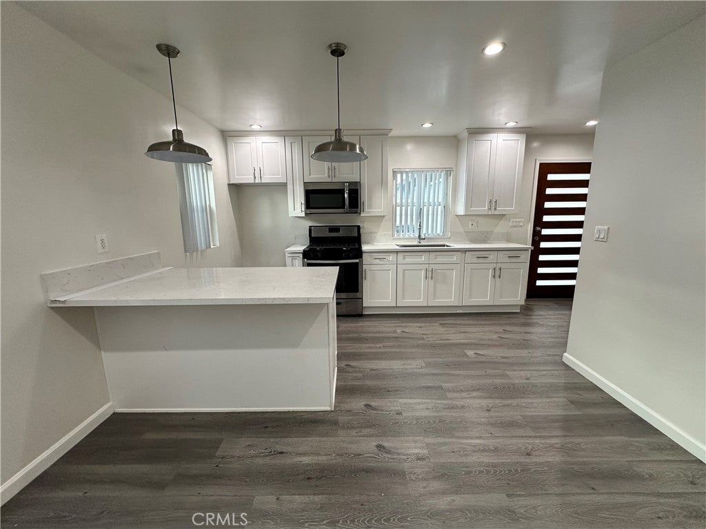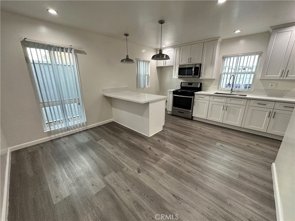 Contemporary 2 bed/2 bath ADU built in 2022 with approx. 655 sq ft in Long Beach’s Zaferia neighborhood. Open layout with a modern kitchen featuring quartz counters, white shaker cabinets, stainless steel appliances, and pendant lighting. Primary bedroom includes its own private bath with a walk-in shower. Second full bath also upgraded with sleek tile finishes. Other highlights include mirrored closet doors, recessed lighting, durable plank flooring, and efficient mini-split heating & cooling. The property also includes environmentally friendly solar panels, helping reduce utility costs. Comes with 1 assigned parking space plus off-street options. Convenient location near Orizaba Park, shopping, dining, Downtown LB, Belmont Shore, Wilson High, CSULB & LBCC.