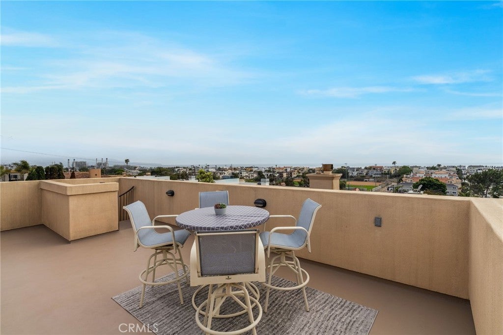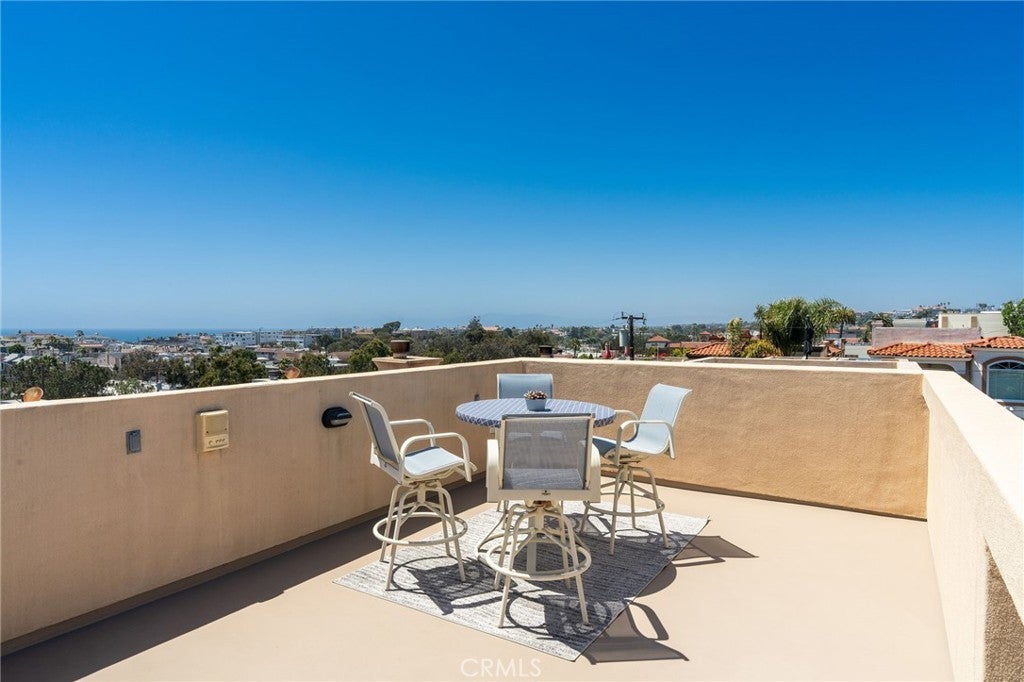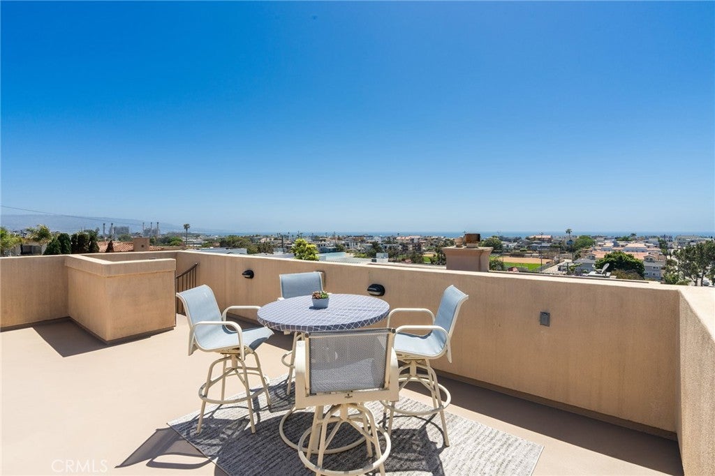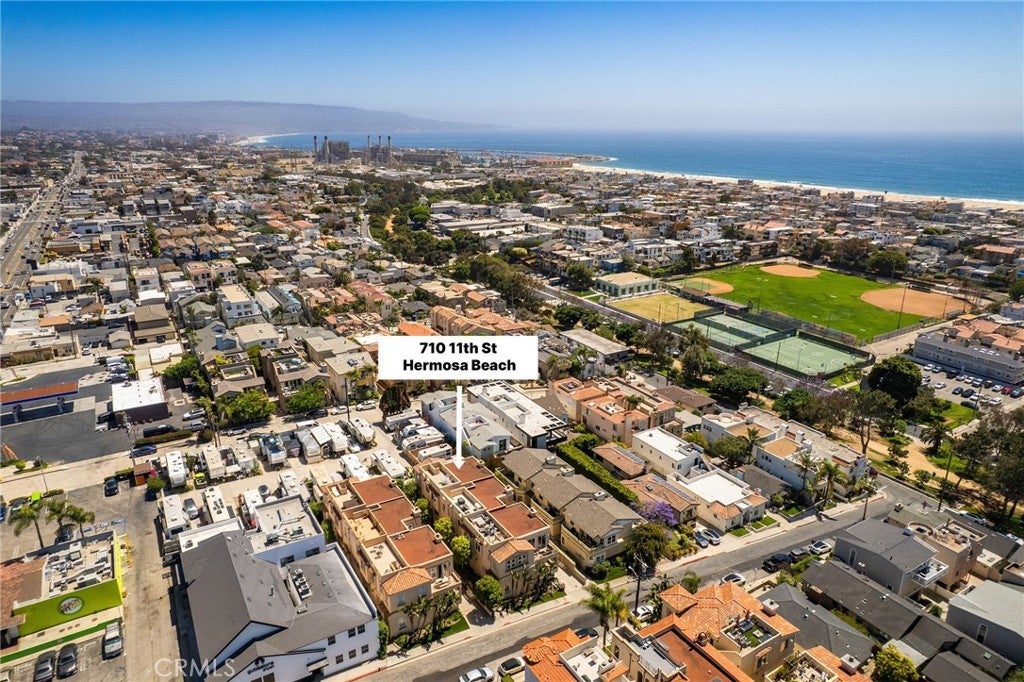 Welcome to this gorgeous OCEAN VIEW 3 bedroom, 2 ½ bathroom townhome with 3 outdoor decks located in the heart of Hermosa Beach. The upstairs living area features a spacious open floor plan with ocean views, cozy fireplace, hard wood flooring, a spacious living room, dining area. kitchen and guest bathroom. The kitchen has granite counter tops, stainless steel appliances, double ovens, cook top and peninsula with countertop seating. Enjoy the ocean breezes from the living room that leads to one of the ocean view decks perfect for entertaining and outdoor dining. From this level a staircase leads to a private rooftop deck with stunning panoramic views. On the entry level you will find 2 spacious bedrooms with ample closet space and the primary bedroom. The primary bedroom has two walk-in closets, private balcony, fireplace and a large ensuite bathroom with a double vanity. All the bedrooms feature hardwood flooring. The lower level offers flexibility with an additional room for a home office, gym, or playroom. On this level you will find a laundry room and storage closet and direct access to the oversized 2 car garage with plenty of room for additional storage. This back unit townhome offers an additional off-street driveway parking spot . Conveniently located and just a short distance to the greenbelt, South Park, Hermosa Valley School, shopping, coffee shops, grocery stores, numerous downtown restaurants, the beach and bike path.
