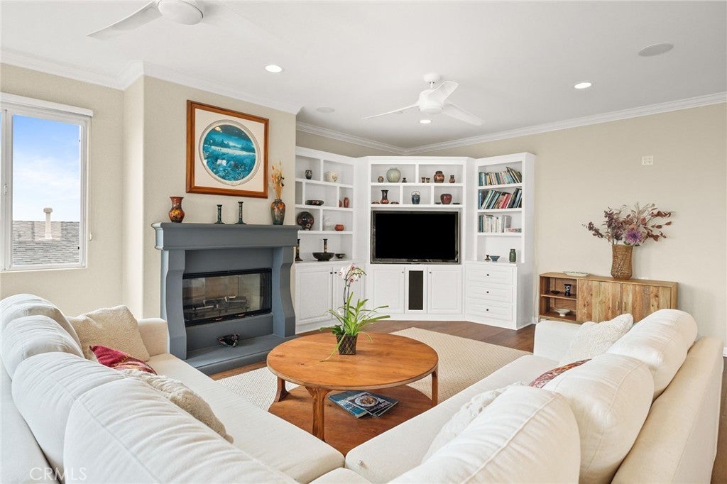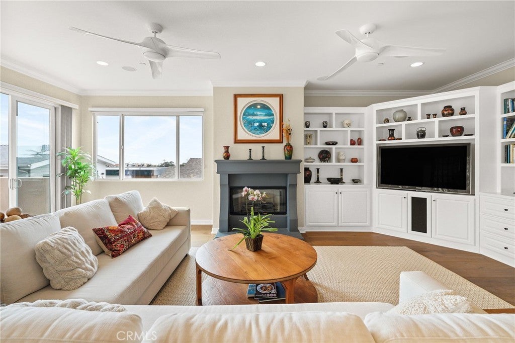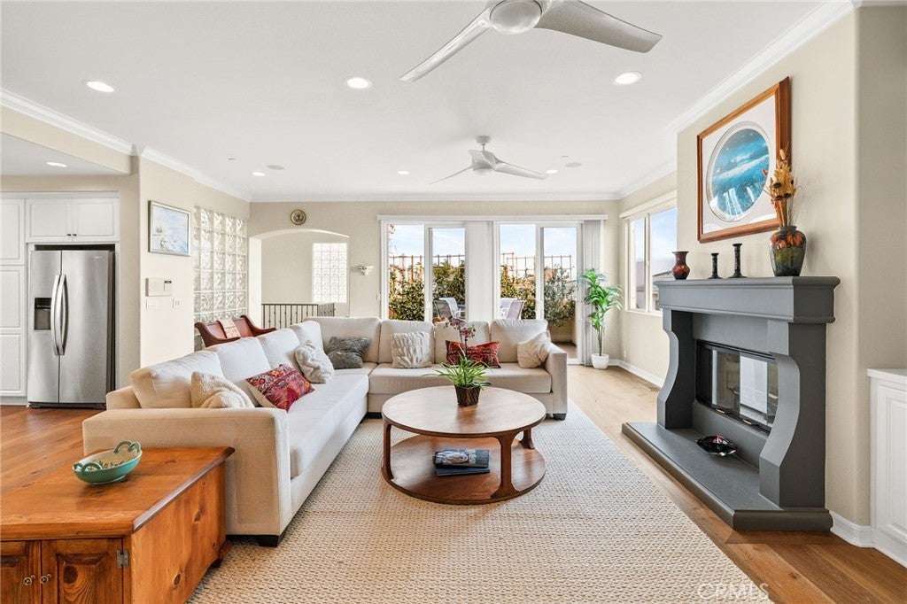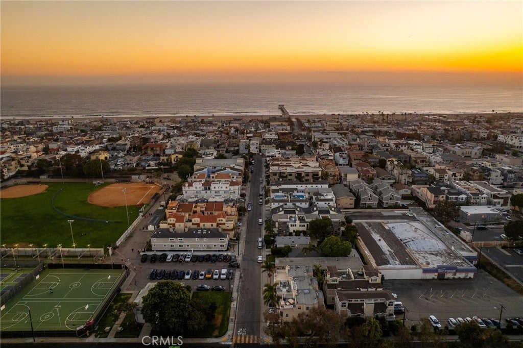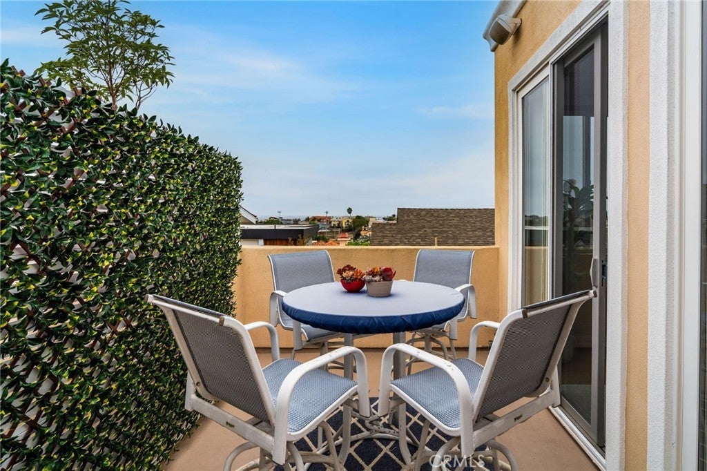 Welcome to this gorgeous OCEAN VIEW 3 bedroom, 2 ½ bathroom townhome with 3 outdoor decks located in the heart of Hermosa Beach. The upstairs living area features a spacious open floor plan with ocean views, cozy fireplace, hard wood flooring, a spacious living room, dining area. kitchen and guest bathroom. The kitchen has granite counter tops, stainless steel appliances, double ovens, cook top and peninsula with countertop seating. Enjoy the ocean breezes from the living room that leads to one of the ocean view decks perfect for entertaining and outdoor dining. From this level a staircase leads to a private rooftop deck with stunning panoramic views. On the entry level you will find 2 spacious bedrooms with ample closet space and the primary bedroom. The primary bedroom has two walk-in closets, private balcony, fireplace and a large ensuite bathroom with a double vanity. All the bedrooms feature hardwood flooring. The lower level offers flexibility with an additional room for a home office, gym, or playroom. On this level you will find a laundry room and storage closet and direct access to the oversized 2 car garage with plenty of room for additional storage. This back unit townhome offers an additional off-street driveway parking spot . Conveniently located and just a short distance to the greenbelt, South Park, Hermosa Valley School, shopping, coffee shops, grocery stores, numerous downtown restaurants, the beach and bike path.