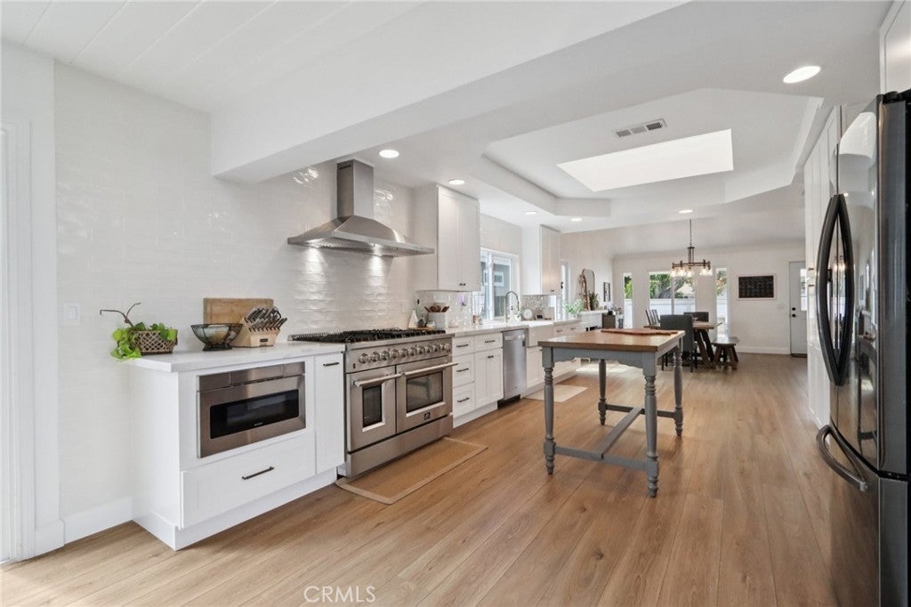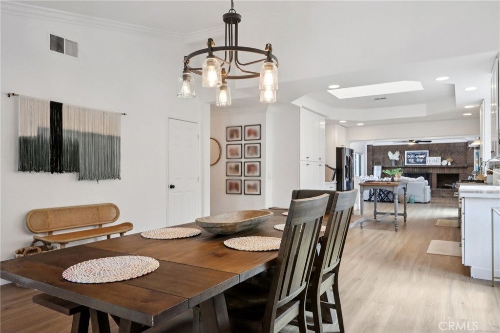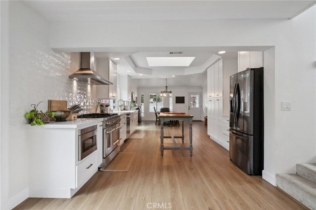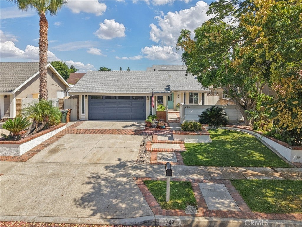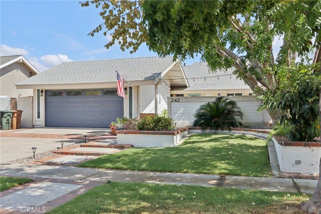 Welcome to 242 N Camino Arroyo, a stunningly updated home in Anaheim that blends modern design with comfortable living. This 4-bedroom, 2-bath residence is thoughtfully designed with an open-concept floor plan, abundant natural light, and stylish finishes throughout. Inside, you’ll find a spacious living area anchored by a cozy fireplace and illuminated by skylights that brighten both the kitchen and living room. The beautifully remodeled kitchen features sleek white cabinetry, high-end stainless-steel appliances, and plenty of counter space to inspire your inner chef. The dining area flows seamlessly into the main living spaces, creating a warm and inviting atmosphere. The private master suite is a true retreat, offering a massive walk-in closet and a spa-like bathroom with dual sinks and modern finishes. Upstairs, a versatile loft area leads to the fourth bedroom and its own closet, along with a balcony that captures a pleasant view—ideal for morning coffee or evening relaxation. Behind a closet wall, you’ll also discover a capped and closed-off additional bathroom, ready to be completed and transformed into extra functionality. The upgrades continue with a fully insulated garage featuring epoxy floors, making it as practical as it is polished. Electrical updates throughout the home provide modern efficiency and peace of mind. Additional highlights include updated flooring, recessed lighting, and a functional layout that balances modern upgrades with everyday comfort. Outdoors, the home offers a large front yard, spacious driveway, and attached garage, while the backyard provides a peaceful retreat with grassy and paved areas—perfect for gatherings, play, or simply unwinding in the fresh air. With its prime location in Anaheim, close to parks, schools, shopping, and dining, this home offers the perfect blend of style, space, and convenience. Don’t miss the chance to make this turnkey property your new home!