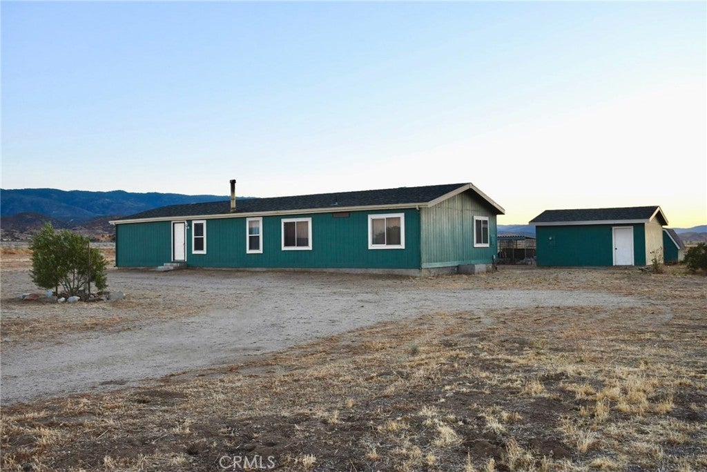 This move-in ready spacious four-bedroom residence sits on 2+ acres in a peaceful and scenic rural area of Antelope Valley, north of Santa Clarita, northwest of Lancaster. The entrance driveway is off of a nicely paved and maintained county road off Hwy 138, with close access to I-5. An ideal home for young couples or families looking for plenty of space and options to add dream-home additions. The completely usable flat acreage is perfect for horses, chickens, goats, patios/decks, or grove of pecan trees or lavender. Existing outdoor water system supports livestock, orchard, or landscaping. Secure your vehicles, watercraft, RV, animals, and children in the yard by way of the existing fencing and lockable entry gate. The manufactured home sits on a permanent seismic foundation. Premium dual-glazed Milgard windows, window cladding trim, French doors, and rain gutters reflect premium upgrades. The exterior house and two-car garage are freshly painted. Garage sits on a concrete foundation with a new garage door, full electrical, and side entry door. Inside, a front entrance foyer opens to a freshly painted spacious, high ceiling open plan living, dining, and family room area, with French doors to the backyard. Generous sized kitchen features new planked wood laminate flooring, wood cabinets, large pantry, and attached dedicated laundry room. Large main suite bedroom is situated on one side of the living area, and features new planked wood laminate flooring, freshly painted walls, large walk-in closet, and large private bathroom with new flooring and vanity and walk-in shower/soaking tub. Three additional carpeted bedrooms are situated opposite of the layout with tall ceilings and built-in closet. A full bath is located next to the trio. Well maintained property by the current owner of 30-plus years. Amenities include swamp cooler, wood-burning fireplace, window treatments. Escape the hustle-and-bustle of urban sprawl. Enjoy your morning coffee with beautiful sunrises and wind down at night watching sunsets that accent hillsides of Los Angeles National Forest and Tehachapi Mountains. Close community essentials are found in Antelope Acres; additional resources, such as schools, shopping, fueling range from 23-40 miles, including Rosamond, Gorman/Frazier Park, Lancaster, Santa Clarita. Recreational lake options include Pyramid and Quail Lake among others. The area receives regular mail/parcel delivery, and the public electrical power is underground.