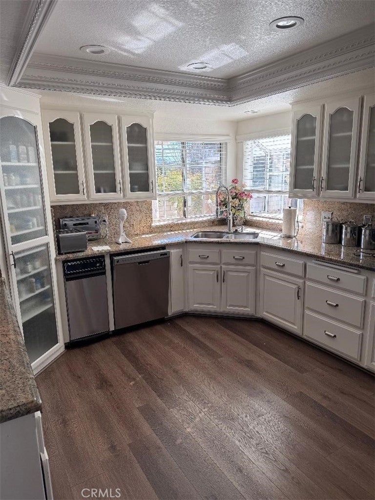 Beautifully maintained and cared for 5 bedroom 3 bath home in the picturesque Enclave of Spring Valley Lake in Victorville. This home was built and cared for by the original owner. Sprawling over 32OO square feet with 3 living areas downstairs that includes a formal living room with dining room, Family room with fireplace and additional living room with fireplace just off the large 3 car attached garage. Updated kitchen with granite countertops with built in cabinets, double oven, toaster and refuse compactor. Just off the kitchen you can entertain in your own wet bar with granite countertops. New Custom flooring throughout with crown molding and baseboards. Spacious separate laundry room. 1 bedroom downstairs currently being used as an office with a closet. 4 large spacious bedrooms upstairs with ceiling fans. Split level AC units for upstairs and downstairs to save on energy costs. Large upstairs balcony that wraps around the East side of the house with lake and sunrise views. Walk or bike to Spring Valley Lake or the Golf Course. This home exemplifies High Desert Living at its finest. Do not miss!