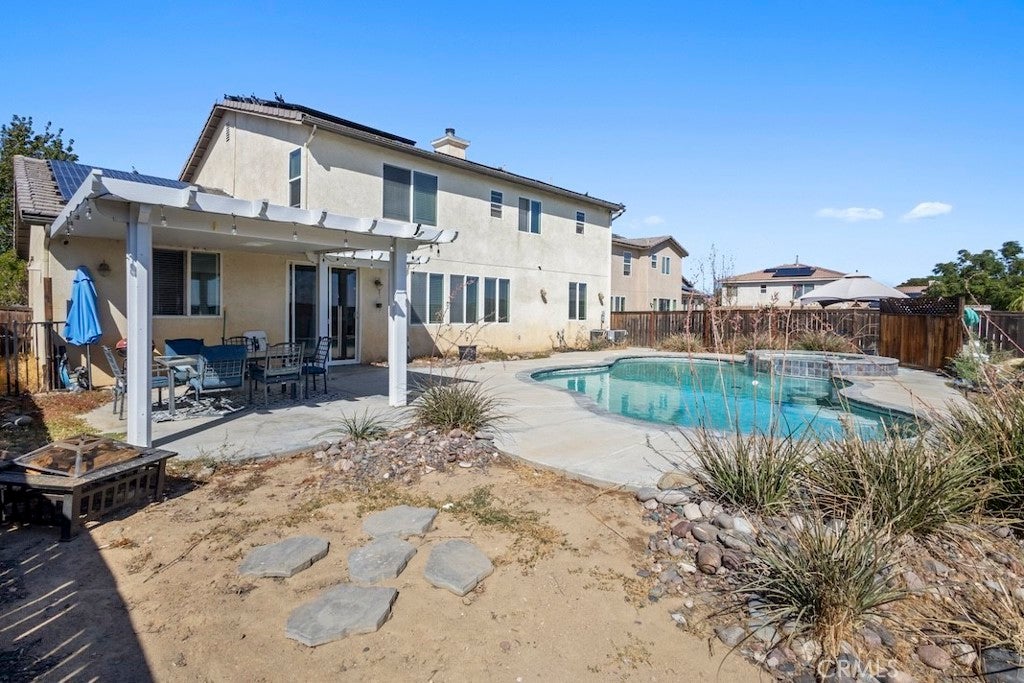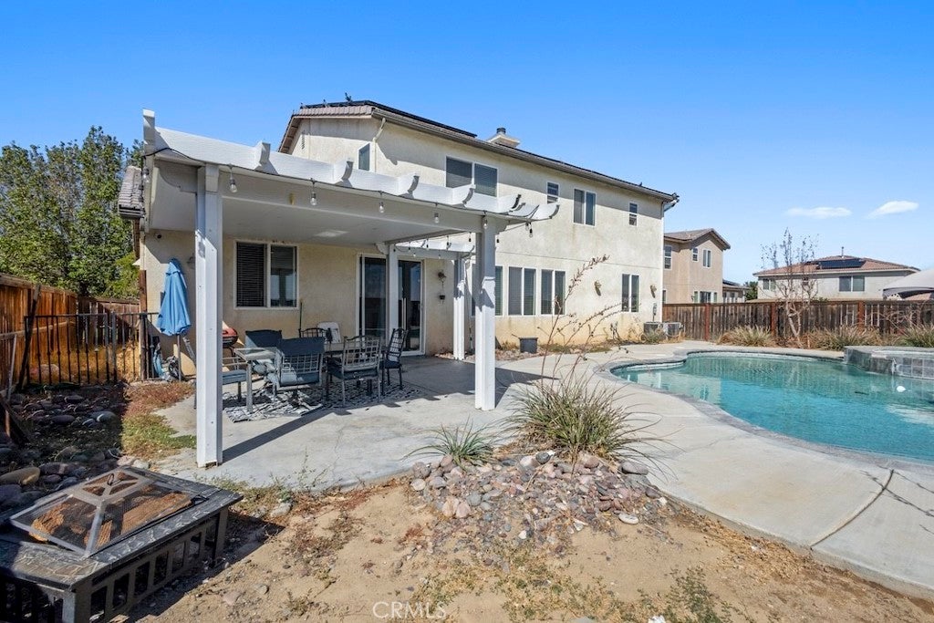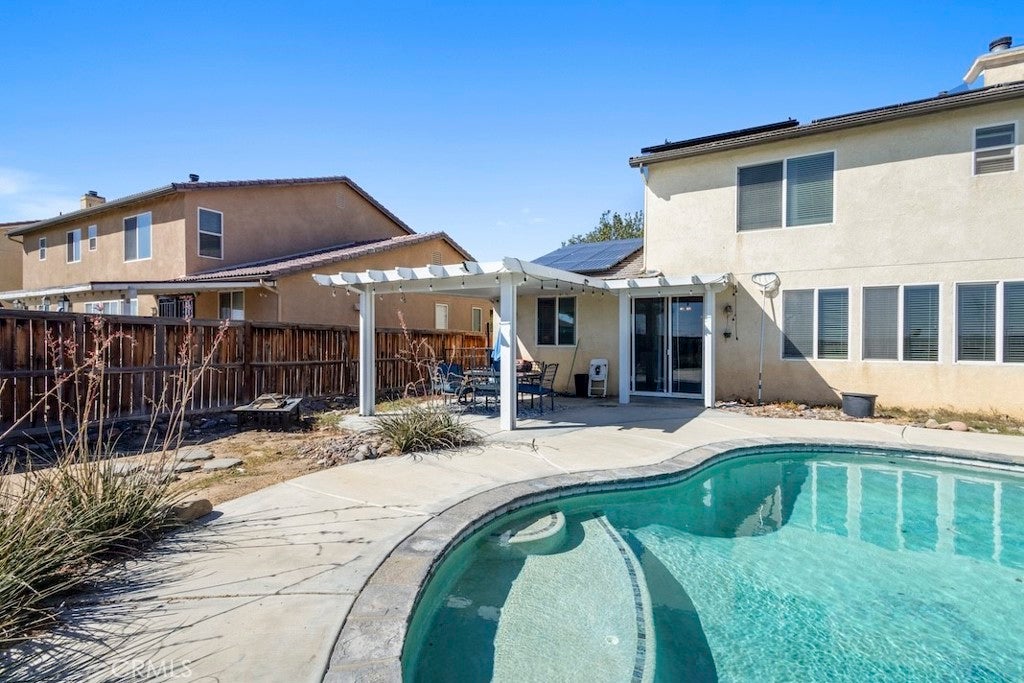 Welcome to this stunning two-story pool home, perfectly situated in a beautiful Victorville neighborhood. This spacious 4-bedroom, 3-bath residence offers the ideal blend of comfort, style, and functionality. Step inside to find a bright and open floor plan with high ceilings, elegant finishes, and a warm, inviting ambiance throughout. The gourmet kitchen is perfect for entertaining, featuring ample cabinetry, a large center island, and easy access to the dining and living areas. Downstairs includes a bedroom and full bath, ideal for guests or multigenerational living. Upstairs, the primary suite offers a peaceful retreat with a luxurious en-suite bath and generous closet space. Step outside to your own private backyard oasis, complete with a sparkling swimming pool, perfect for summer gatherings and relaxing under the California sun. A spacious patio area provides the perfect setting for BBQs, parties, or quiet evenings at home. With a 3-car attached garage, plenty of parking, and a prime location near schools, shopping, and freeway access, this home truly has it all.