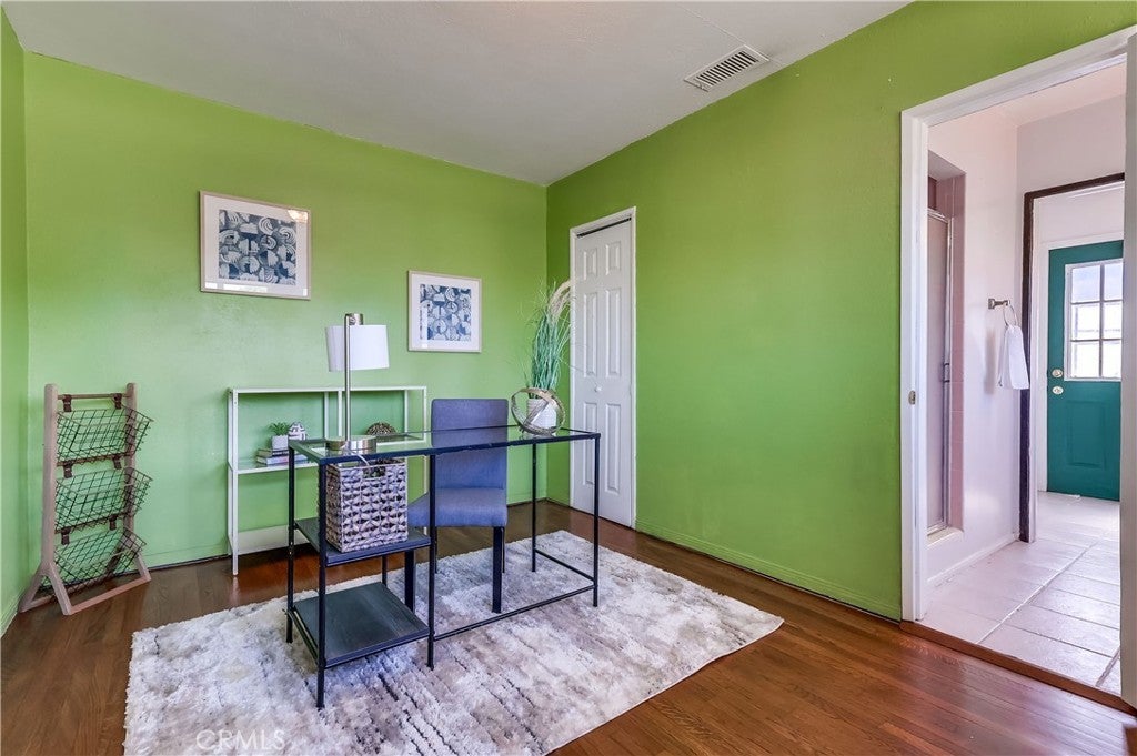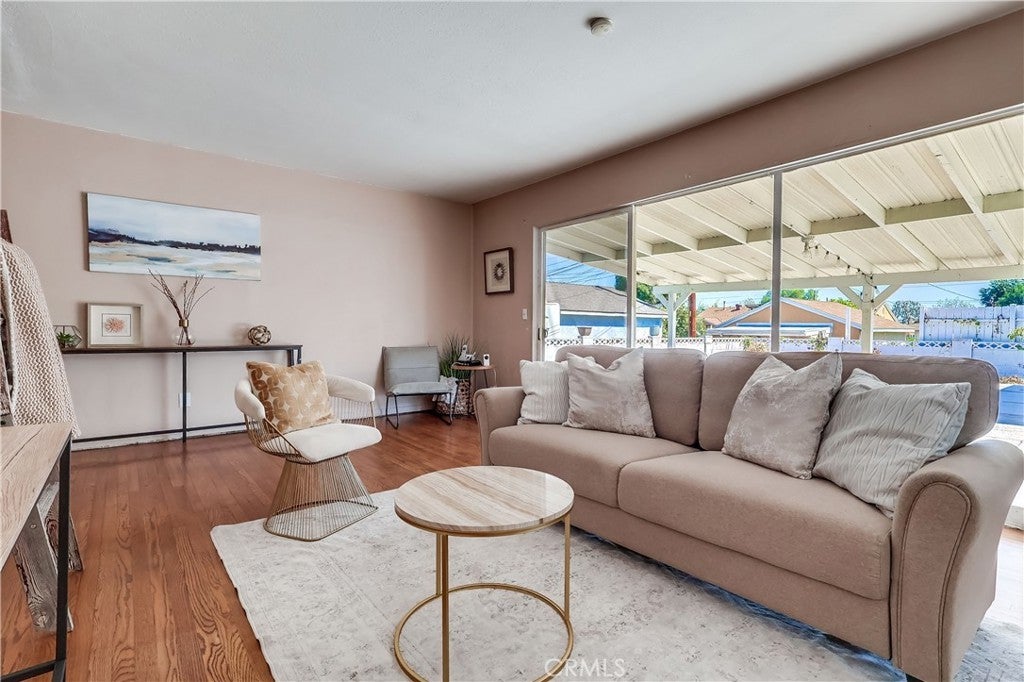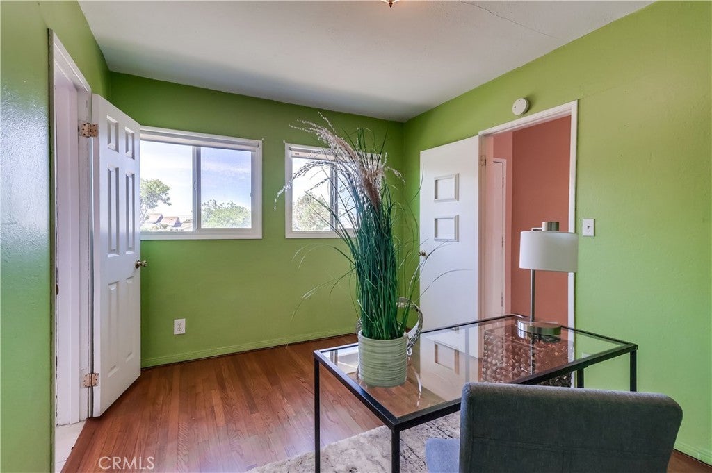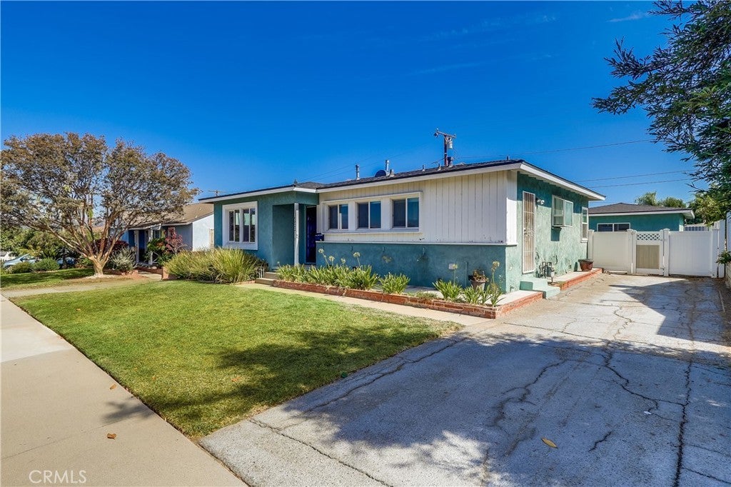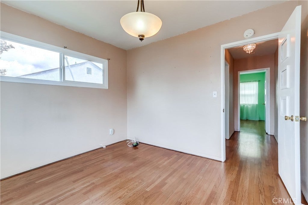 This charming 3-bedroom, 1 3/4-bath home offers an ideal floor plan with seamless flow and modern potential. As you step inside, you are greeted by an expansive and open living room, where natural light pours in through large windows that frame a beautiful view of the lush, green backyard. The inviting space is adorned with rich hardwood floors that flow throughout the home, adding warmth and elegance. This home features a thoughtfully designed bedroom layout to meet a variety of needs. One of the bedrooms functions as a perfect work-from-home (WFH) space, complete with its own attached 3/4 bathroom for added privacy and convenience. This flexible space could also serve as a private retreat for a teenager or a guest suite. The other two bedrooms are generously sized and well-appointed, each offering ample closet space to keep everything organized. Practical features include inside laundry, offering the ultimate convenience. Outside, the oversized, detached garage presents a fantastic opportunity for an Accessory Dwelling Unit (ADU) conversion. This is ideal for generating rental income, providing a private guest house, or creating a multi-generational living space. The spacious backyard and ADU potential make this property a truly special find in a desirable Whittier location.