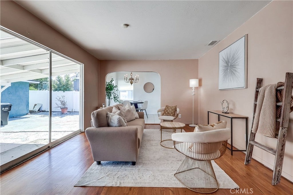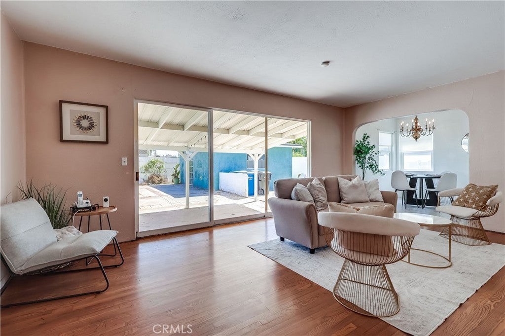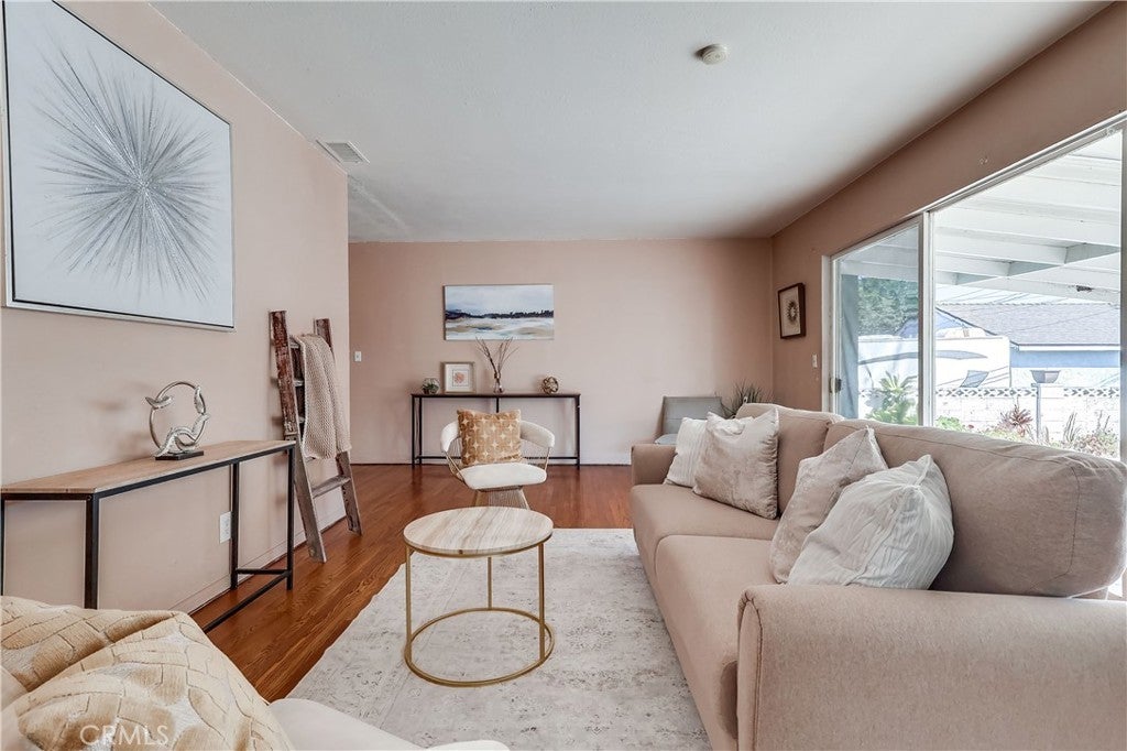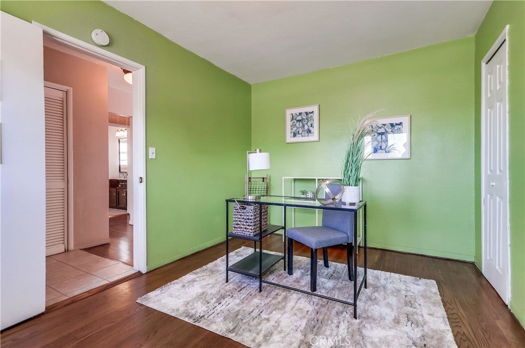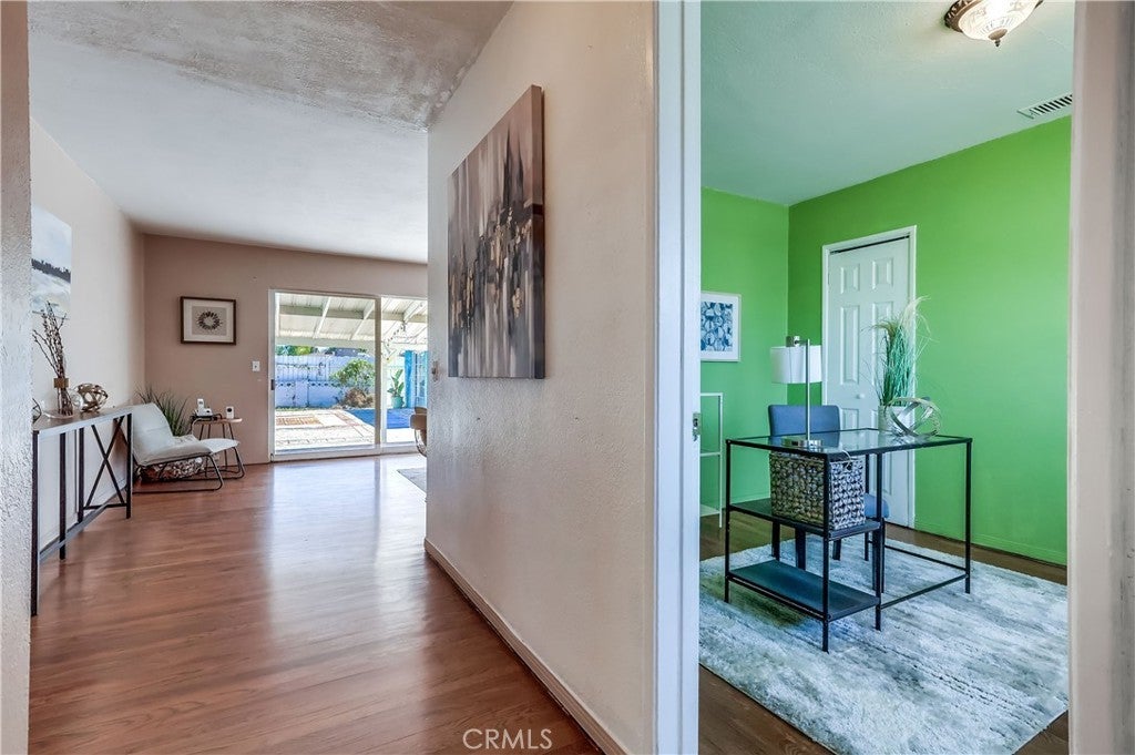 This charming 3-bedroom, 1 3/4-bath home offers an ideal floor plan with seamless flow and modern potential. As you step inside, you are greeted by an expansive and open living room, where natural light pours in through large windows that frame a beautiful view of the lush, green backyard. The inviting space is adorned with rich hardwood floors that flow throughout the home, adding warmth and elegance. This home features a thoughtfully designed bedroom layout to meet a variety of needs. One of the bedrooms functions as a perfect work-from-home (WFH) space, complete with its own attached 3/4 bathroom for added privacy and convenience. This flexible space could also serve as a private retreat for a teenager or a guest suite. The other two bedrooms are generously sized and well-appointed, each offering ample closet space to keep everything organized. Practical features include inside laundry, offering the ultimate convenience. Outside, the oversized, detached garage presents a fantastic opportunity for an Accessory Dwelling Unit (ADU) conversion. This is ideal for generating rental income, providing a private guest house, or creating a multi-generational living space. The spacious backyard and ADU potential make this property a truly special find in a desirable Whittier location.