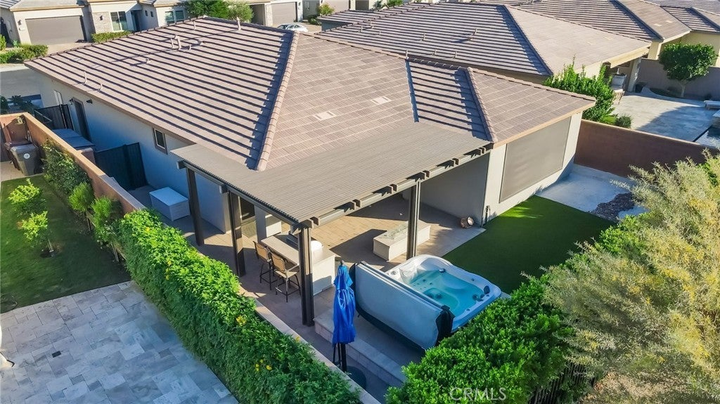Welcome to this beautifully upgraded single-story home in Trilogy at The Polo Club. Offering 1,847 sq. ft., it features 2 private primary suites, 2.5 bathrooms each with its own large walk-in closet outfitted with built-in cabinetry, plus a third enclosed room ideal for guests or a home office, and a half bath. The café-style kitchen includes two convection ovens, a built-in microwave, quartz counters, upgraded cabinetry, stainless steel appliances, and a generous island. Tile flooring and 9’ ceilings enhance the open layout. A beautiful glass door opens to a landscaped backyard with a covered patio, automatic custom blinds for privacy and shade, and a Jacuzzi, creating a comfortable space for relaxing or entertaining. An air-conditioned garage and paver driveway add convenience and curb appeal. Optional membership provides access to resort-style amenities including pools, fitness center, pickleball, tennis, and June Hill’s Table. Set against the Santa Rosa Mountains, this home blends style, comfort, and an active lifestyle.