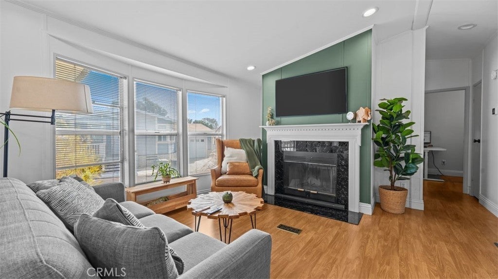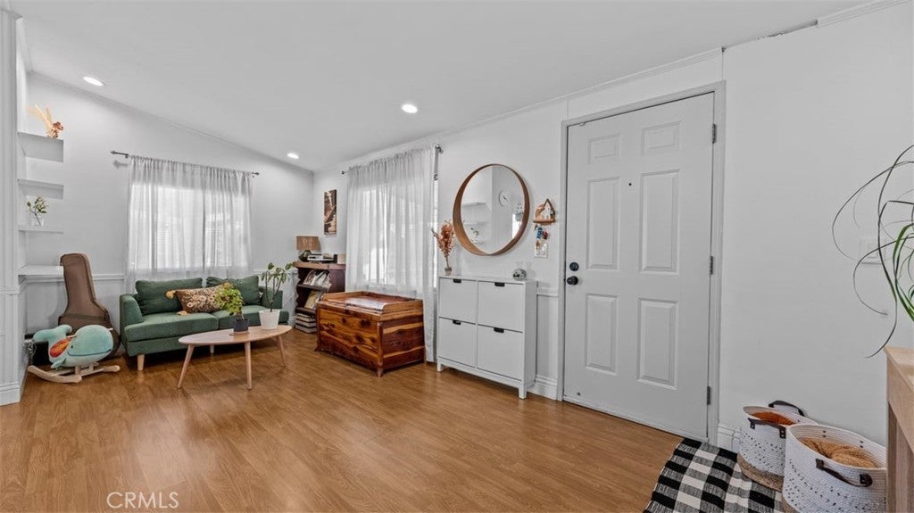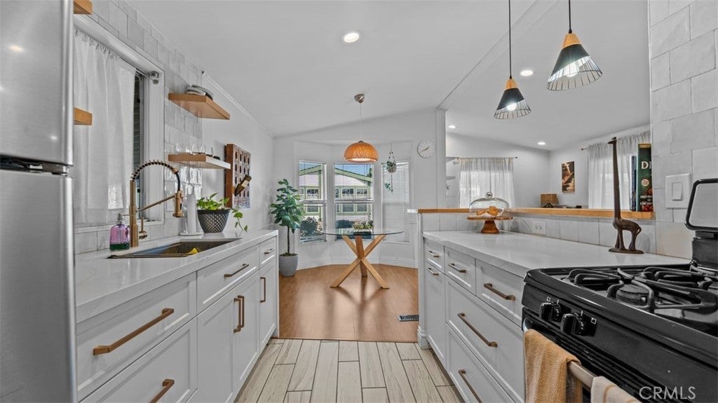 Welcome to this beautifully upgraded 2-bedroom, 2-bath mobile home in the highly desirable city of Brea! Step inside to an inviting open layout including custom rift-white oak and white cabinetry, quartz countertops with a waterfall edge, and a soft-close Blum hinges. The kitchen shines with pendant lighting, a built-in water filter faucet, and thoughtful storage touches like maple dovetail drawers, cutlery inserts, and a coffee pod organizer. Enjoy modern comforts such as dimmable app-controlled LED lighting, fresh interior paint, matte black Kwikset door hardware, and a new AC thermostat. The laundry area features a stylish new cabinet with a rift-white oak top. This move-in ready mobile home blends warmth, functionality, and contemporary design. A perfect fit for modern living in Brea! Schedule your tour today!