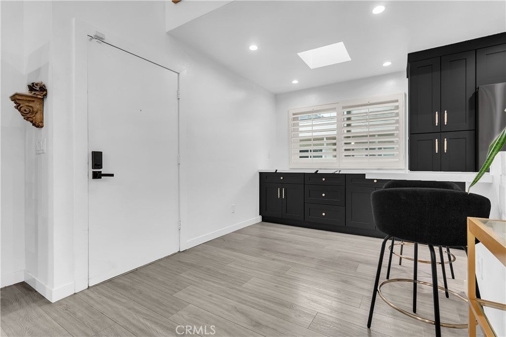 2-story penthouse townhome w/ views nestled in the heart of West Hollywood's Norma Triangle. This comfortable townhome offers the perfect blend of amenities and convenience, boasting 2 bedrooms and 2 bathrooms, each functioning as its own primary suite. Step inside and discover an inviting living space with updated laminate flooring and glass enclosed staircase that adds a modern touch. The vaulted ceiling in the living room adds a sense of grandeur and opens up the space, allowing an abundance of natural light to flow throughout. Other features include ample closet space (3 closets in the downstairs bedroom!), wall of glass in the upstairs bedroom, IN UNIT LAUNDRY, recessed lighting, and plantation shutter window coverings. One of the true highlights of this penthouse is the upstairs private patio, where you can enjoy breathtaking VIEWS of the downtown LA skyline! It's the perfect spot to unwind, entertain guests, or savor your morning coffee as the city comes to life. Convenience is key, with TWO SIDE BY SIDE PARKING SPOTS in the gated underground garage for your vehicles along with extra storage. The building is secure entry with cameras for your peace of mind. Location is everything, and this condo places you within easy reach of all the exciting attractions and amenities that West Hollywood has to offer. Enjoy the city's vibrant nightlife, renowned restaurants, boutiques, and cultural hotspots, all just moments from your doorstep. Community amenities include large pool with lounge chairs and a new workout room. Adding to the appeal, this property boasts VERY LOW HOA DUES that all utilities except for electricity, making it a cost-effective choice for homeowners.