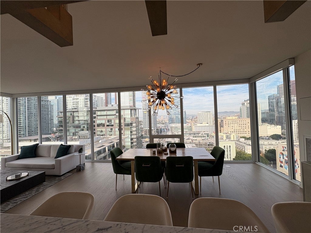 Experience refined urban luxury from the 18th floor of the highly coveted TEN50LA residence, where contemporary architecture meets breathtaking panoramic views of Downtown Los Angeles. This fully furnished southwest corner residence embodies sophistication, offering a seamless blend of comfort, elegance, and design integrity. The open-concept living space is framed by floor-to-ceiling glass walls, capturing endless skyline vistas and natural light throughout the day. A chef’s kitchen anchors the home, meticulously crafted with Domus & Domus Italian cabinetry, a Bertazzoni cooktop, Liebherr refrigerator, Bosch panelized dishwasher, stainless-steel oven, and a striking Carrera marble waterfall island—a statement of artistry and function. The primary suite is a private sanctuary featuring automated blinds, a custom walk-in wardrobe, and a spa-inspired en-suite bath adorned with a floating dual-sink vanity, premium finishes, and sweeping city views. A secondary bedroom offers versatility for guests or a refined home office. Residents of TEN50LA enjoy access to an exclusive collection of amenities curated for the modern urbanite, including a 24-hour concierge, private theater, executive business lounge, resort-style heated pool and spa, and a state-of-the-art fitness center equipped with Peloton bikes. Two dedicated parking spaces complete this offering. Perfectly positioned in the heart of South Park, moments from LA Live, Crypto.com Arena, world-class dining, luxury shopping, and the city’s premier cultural destinations — with effortless connectivity to the 10 and 110 freeways and USC. A true testament to elevated city living, this residence redefines sophistication in Downtown Los Angeles.