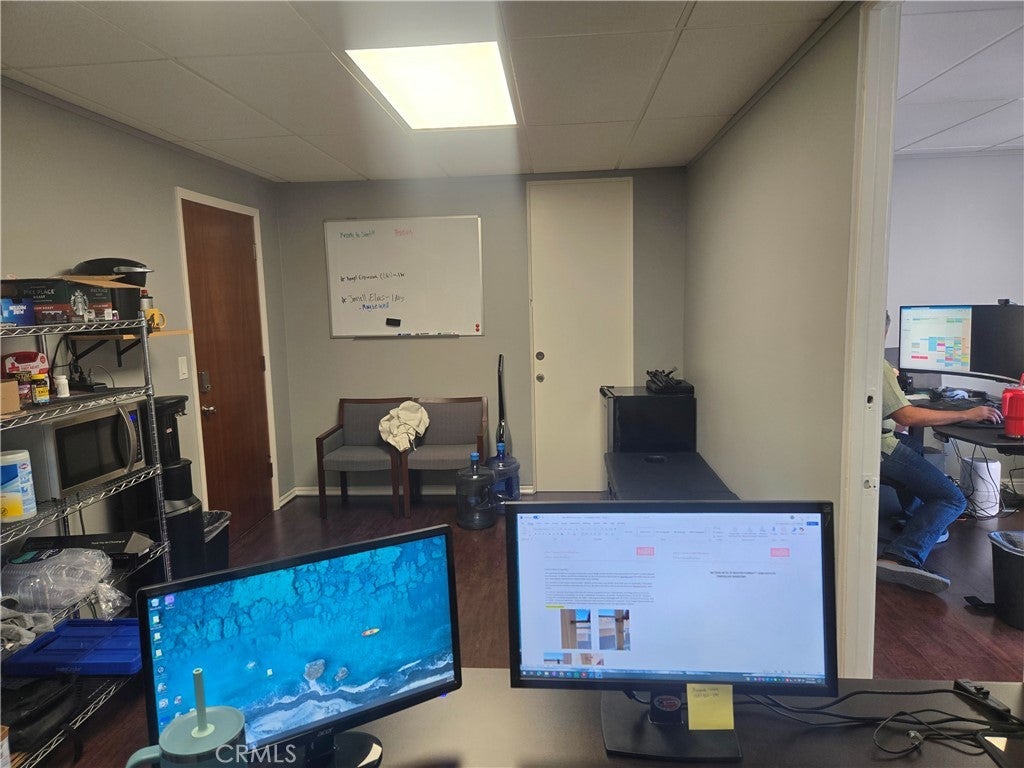 Office Space within commericial building in highly travaled street in Los Alamitos. The office building is near Los alamitos blvd across from a large shopping center with Bank of America, Vons and several restaurants. The office is approximately 350 sqft divided in 2 rooms. central AC and heat with 2 bathrooms in the hall. 2 parking spaces and all utilities included in rent amount.
