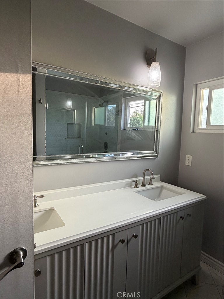 Welcome to this beautiful 3-bedroom, 2-bath home featuring updated bathrooms and a modern galley kitchen with white cabinets and quartz countertops. The inviting family room, complete with a cozy fireplace, adds warmth and character for those perfect evenings at home. One bedroom and a full bath are conveniently located downstairs, along with a spacious dining room that leads to a large living room with sliding doors opening to a generous backyard, ideal for entertaining or play. Upstairs, you'll find two additional bedrooms and a beautifully updated bathroom with dual sinks and a walk-in shower. Enjoy energy efficiency with dual-pane windows and central A/C and heating for year-round comfort. The expansive backyard offers endless possibilities for outdoor activities or future expansion, all ideally located near Uptown Whittier, popular hiking trails, shopping centers, and dining options. Don't miss out on this gem—schedule your showing today!