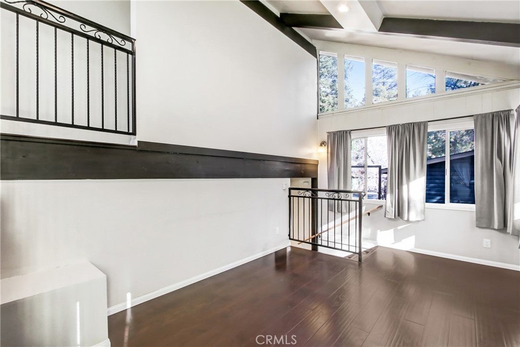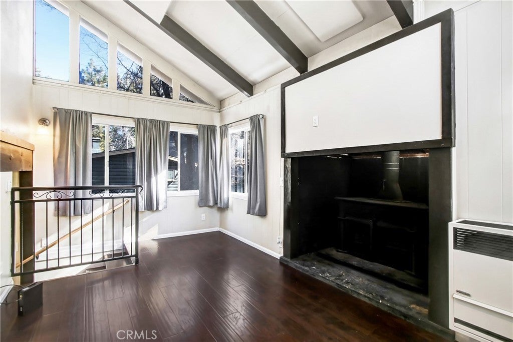 Cozy Big Bear home on a Large Lot! Welcome to this charming 2 bed, 1 bath mountain retreat offering 789 sq ft of living space on a spacious 12,051 sq ft lot. Featuring vaulted ceilings, exposed beams, a cozy fireplace, and an updated kitchen with stainless appliances, this home is perfect as a full-time residence, weekend getaway, or short-term rental. Enjoy the peaceful setting from the covered deck surrounded by pine trees, with plenty of room for outdoor entertaining, parking, and future expansion. Conveniently located near Big Bear Lake, ski resorts, hiking trails, and the Village. A great opportunity to own in Big Bear!