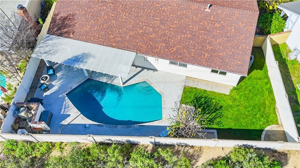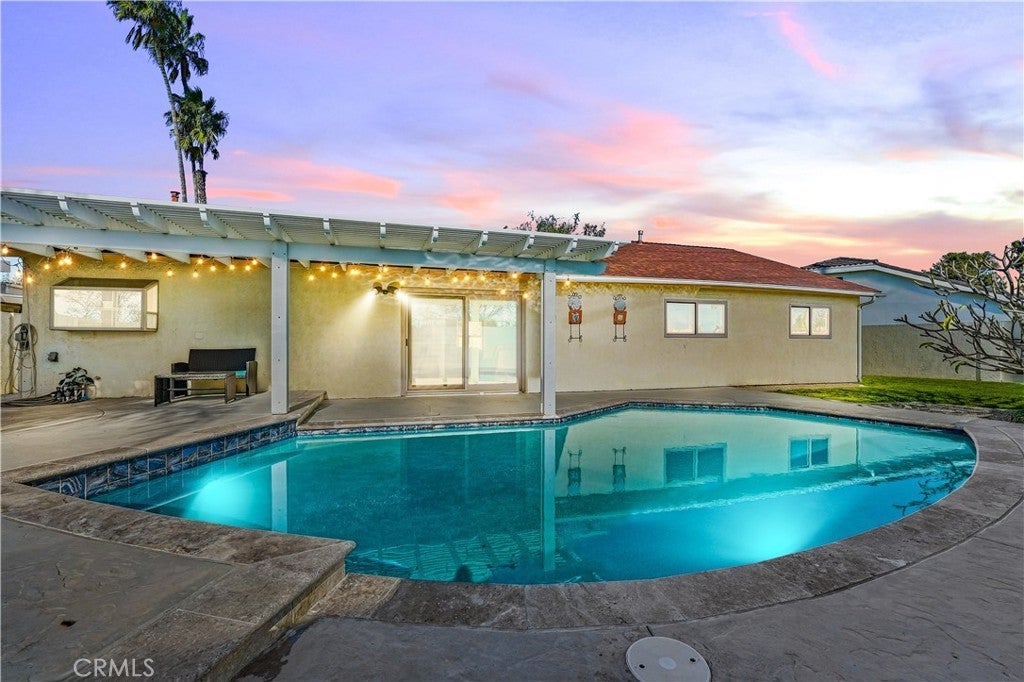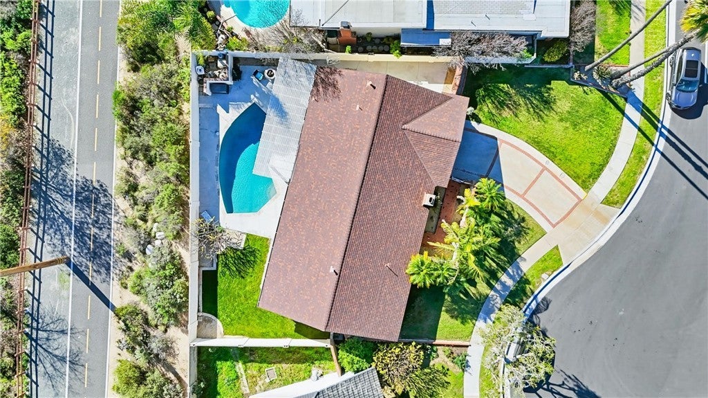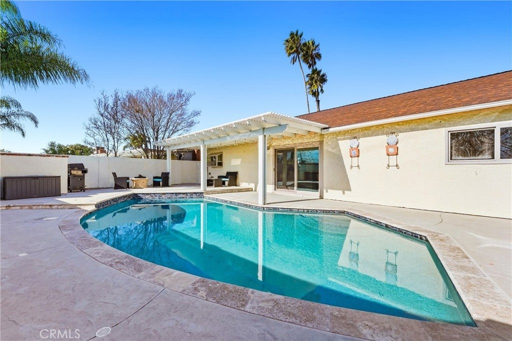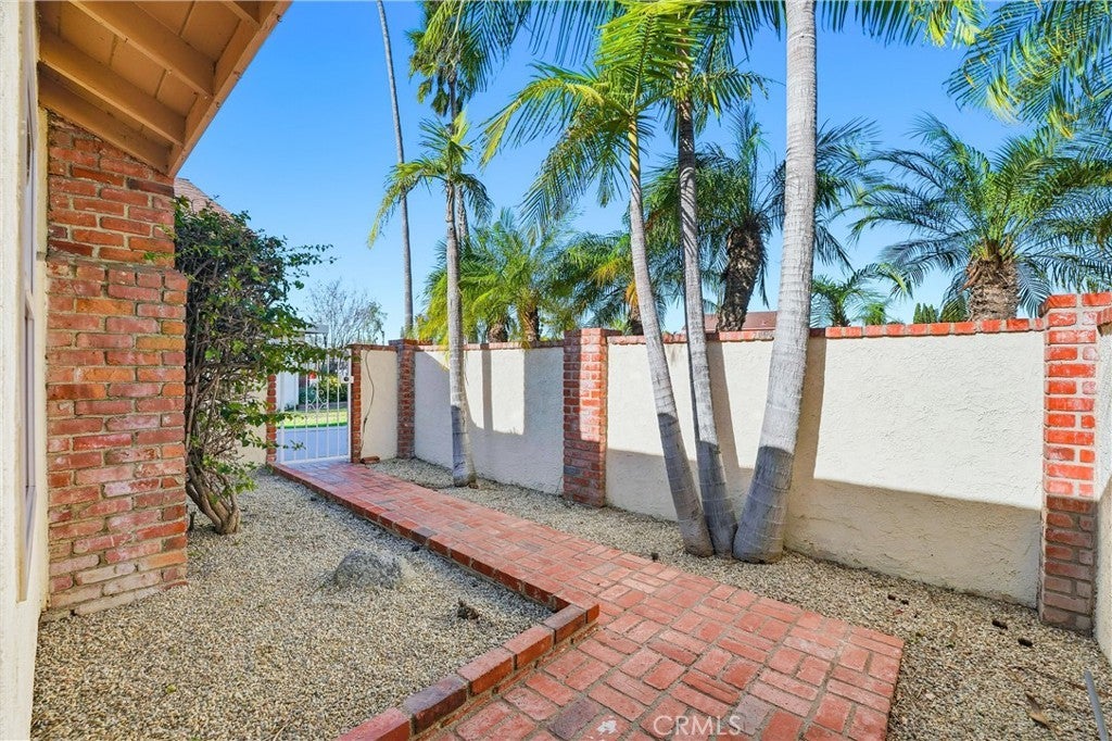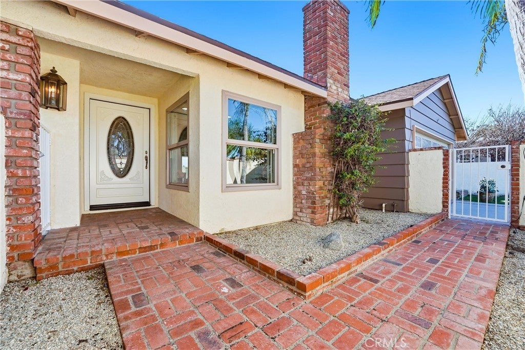 NO neighbors behind you... tucked away in a cul-de-sac this 3 bed, 2 bath, 1,443 sqft POOL home under 1M in Anaheim pairs PRIVACY, mountain VIEWS, and thoughtful upgrades in a setting that feels removed yet remarkably connected. A lush & secure gated courtyard entry with buzzer access and beveled glass front door create a warm and welcoming first impression. Inside, the living room is anchored by a fireplace and enhanced by timeless plantation shutters, crown molding throughout, recessed lighting, and refined architectural details. The remodeled kitchen features newly painted cabinetry, new countertops, a striking herringbone brick floor, and a beautifully detailed copper tin ceiling that adds character and charm. Just off the kitchen, the family room is finished with durable engineered wood flooring, creating a comfortable and functional space for everyday living. A redesigned wet bar / coffee bar complements the layout, making the home ideal for both daily life and entertaining. Additional highlights include attic storage with built-in shelving, central A/C for year-round comfort, and an intercom system for added convenience. Outdoors, the private yard is a true retreat, complete with a heated pool, Futurastone decking, and a mature plumeria tree, all set against exceptionally quiet mountain views. Ideally located near the 5, 57, and 91 freeways, the home offers easy access throughout Orange County. Nearby schools include Rio Vista Elementary, Valadez Middle Academy, and Valencia High. Outdoor and recreational highlights include Oak Canyon Nature Center and Yorba Regional Park, while Honda Center, Disneyland Resort, and the Anaheim Packing House are just minutes away for dining, entertainment, and year-round events.