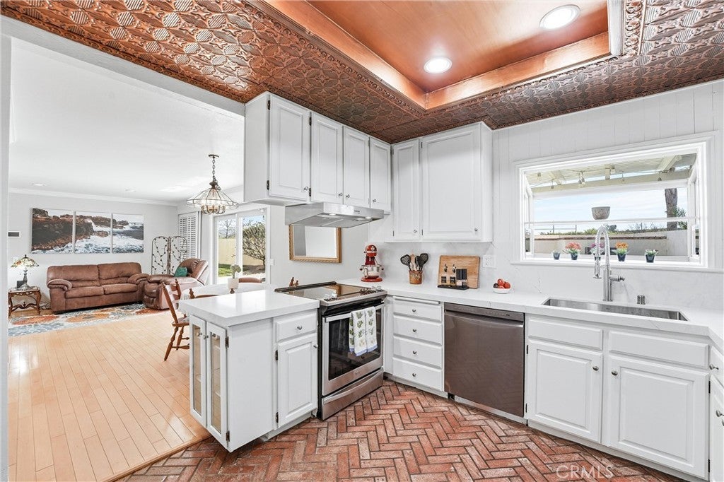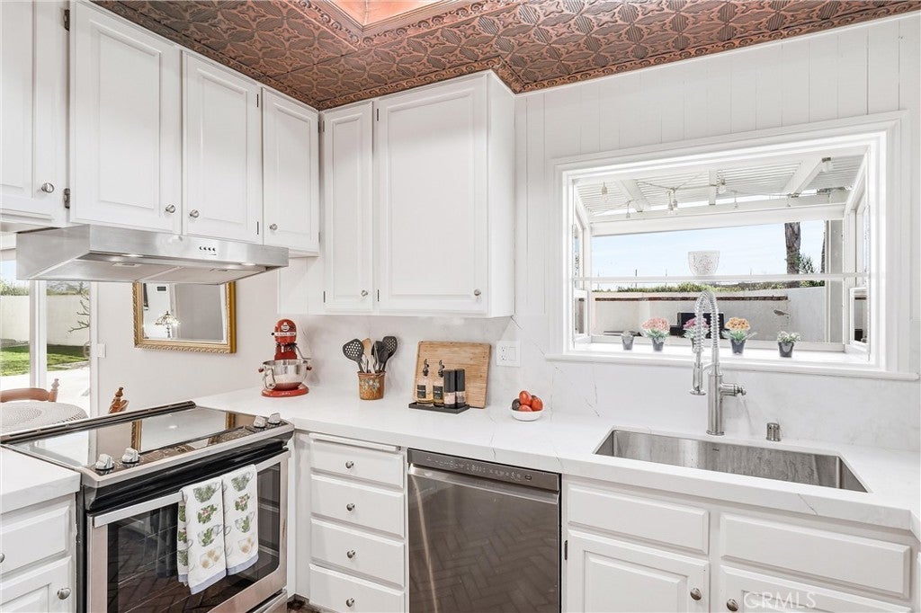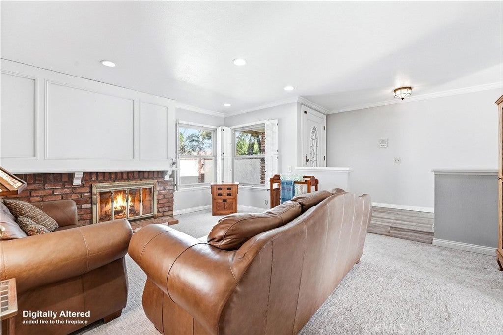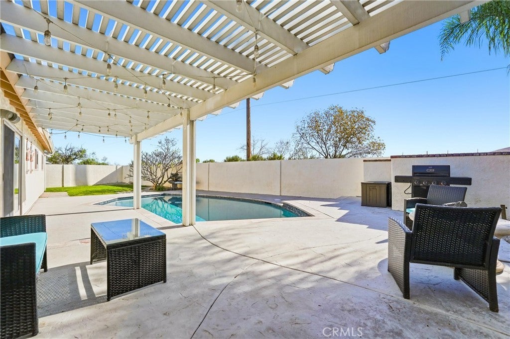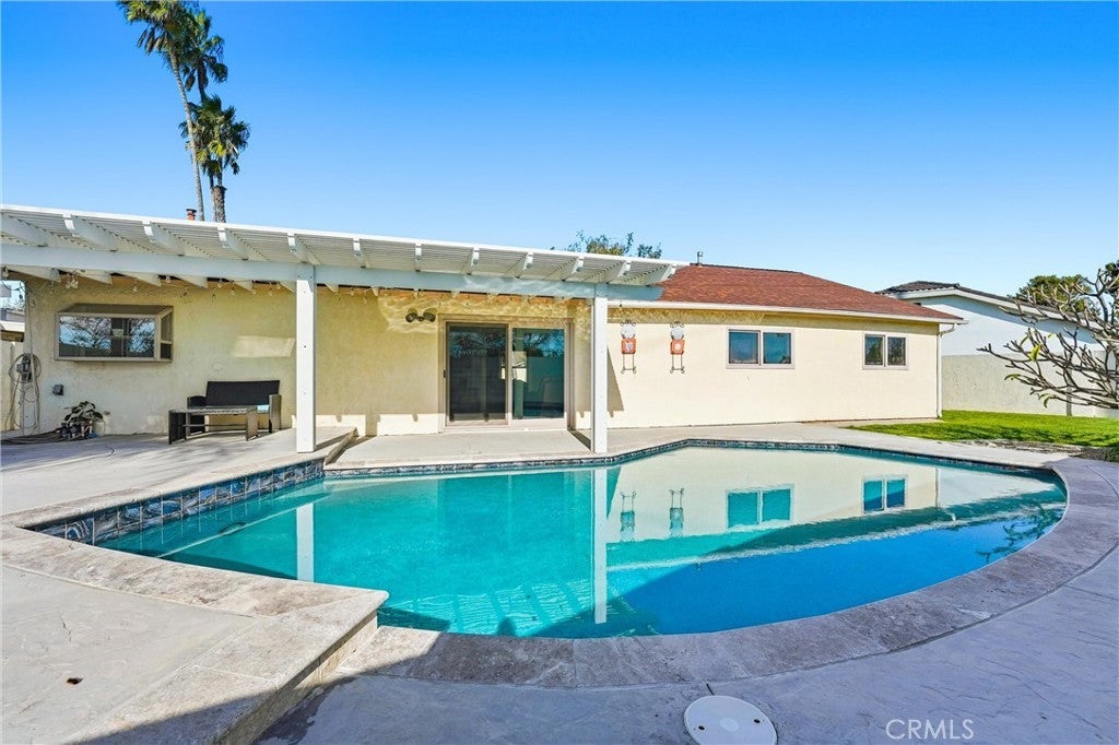 NO neighbors behind you... tucked away in a cul-de-sac this 3 bed, 2 bath, 1,443 sqft POOL home under 1M in Anaheim pairs PRIVACY, mountain VIEWS, and thoughtful upgrades in a setting that feels removed yet remarkably connected. A lush & secure gated courtyard entry with buzzer access and beveled glass front door create a warm and welcoming first impression. Inside, the living room is anchored by a fireplace and enhanced by timeless plantation shutters, crown molding throughout, recessed lighting, and refined architectural details. The remodeled kitchen features newly painted cabinetry, new countertops, a striking herringbone brick floor, and a beautifully detailed copper tin ceiling that adds character and charm. Just off the kitchen, the family room is finished with durable engineered wood flooring, creating a comfortable and functional space for everyday living. A redesigned wet bar / coffee bar complements the layout, making the home ideal for both daily life and entertaining. Additional highlights include attic storage with built-in shelving, central A/C for year-round comfort, and an intercom system for added convenience. Outdoors, the private yard is a true retreat, complete with a heated pool, Futurastone decking, and a mature plumeria tree, all set against exceptionally quiet mountain views. Ideally located near the 5, 57, and 91 freeways, the home offers easy access throughout Orange County. Nearby schools include Rio Vista Elementary, Valadez Middle Academy, and Valencia High. Outdoor and recreational highlights include Oak Canyon Nature Center and Yorba Regional Park, while Honda Center, Disneyland Resort, and the Anaheim Packing House are just minutes away for dining, entertainment, and year-round events.