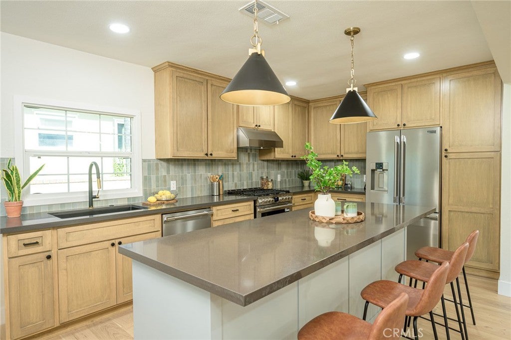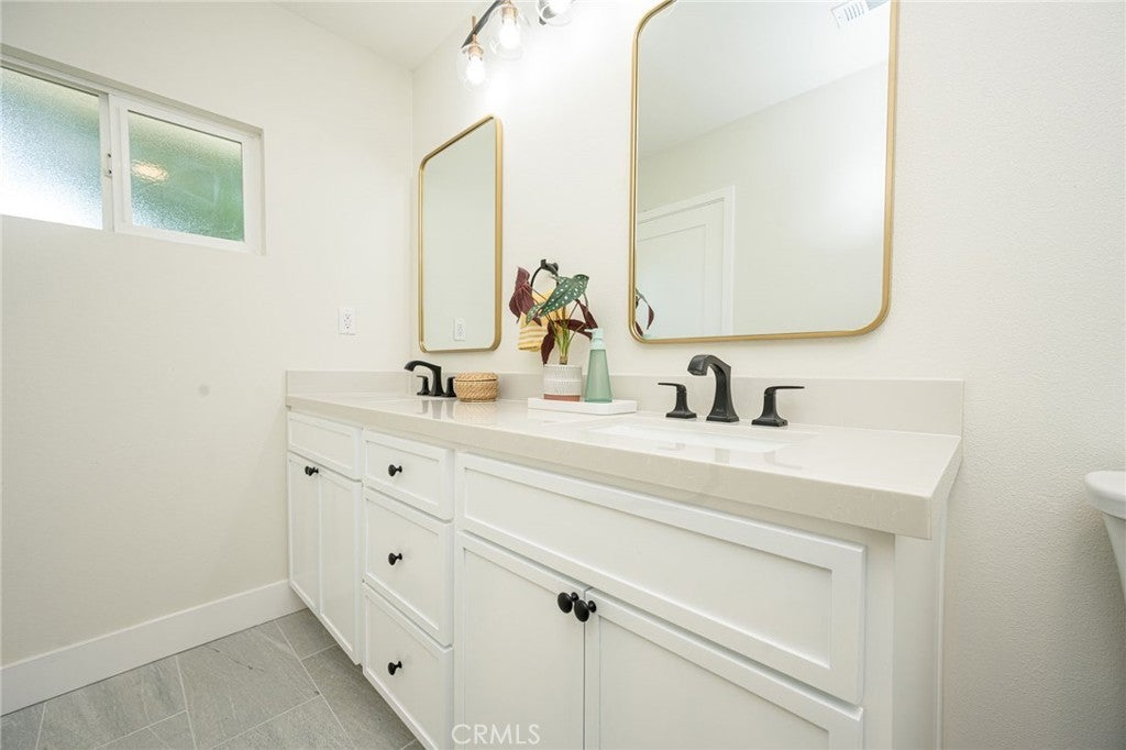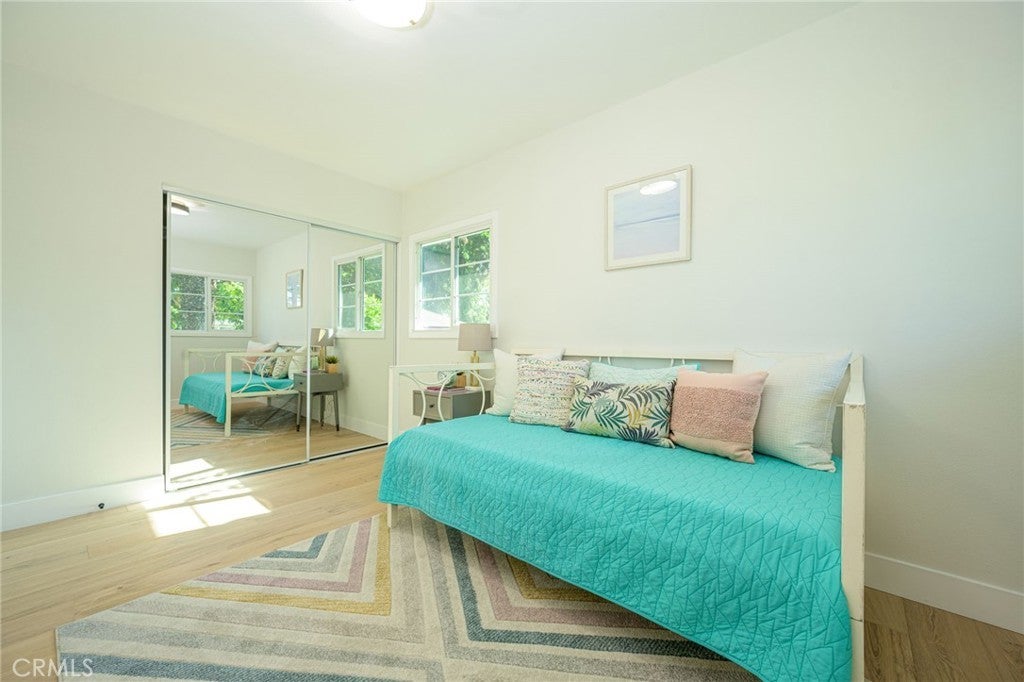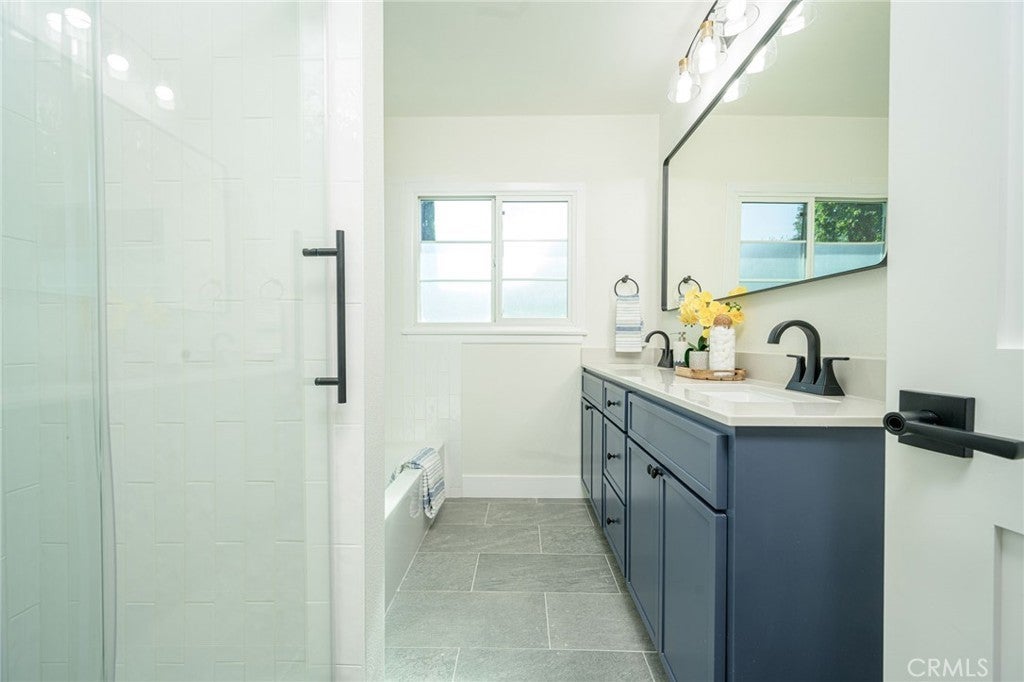 Gorgeous UPDATED 4-bedroom, 2-bathroom home in desirable Monrovia neighborhood on a quiet tree lined street with mountain views. This home features an open concept living space with a decorative fireplace and access to one of two outdoor covered patios. The kitchen has all new custom cabinetry, sleek countertops, tile backsplash, stainless steel appliances, new fixtures and a large center island with countertop seating. The spacious primary bedroom has a large closet with custom built-ins, ensuite bathroom and access to the outside patio area. Both the primary and hall bathroom have new double sink vanities, custom tile work and fixtures. Other features include luxury flooring throughout the living area and bedrooms, freshly painted exterior and interior, stylish new plumbing and lighting fixtures throughout, upgraded electrical panel, HVAC, vinyl windows, and indoor laundry. The spacious enclosed backyard is perfect for outdoor fun and entertainment with two large, covered patio areas, and yard. There is an oversized detached two car garage with ADU potential and plenty of off-street parking in the long driveway. Buyer to verify all building codes and ADU guidelines with the city. This home is just a short distance from Old Town Monrovia shops, restaurants, Saturday Farmer’s Market and Friday night spring and summer street fair and close to the Duarte Bike Trail. Tax rolls show different bedroom count.