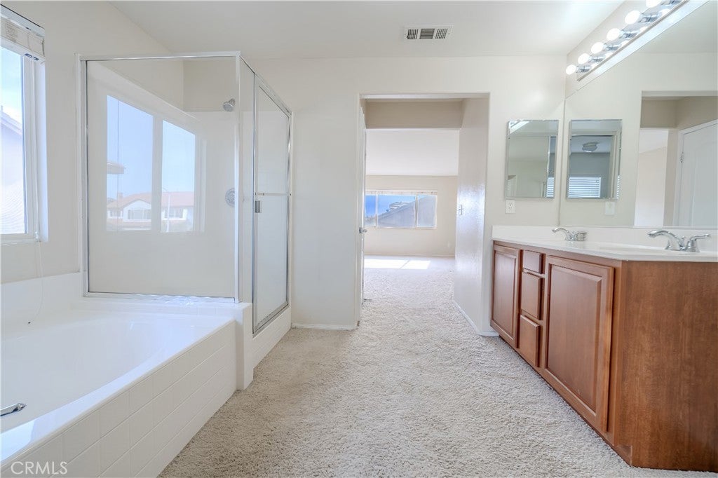 Beautifully maintained & thoughtfully designed, this expansive 5-bedroom, 3-bathroom residence offers exceptional space, comfort, & versatility. The inviting layout features generous living & dining areas filled with natural light, creating a warm and welcoming atmosphere. The kitchen is well-appointed with abundant cabinetry, ample counter space, & a functional design ideal for both everyday living & entertaining. A downstairs bedroom & full bathroom provide added convenience and flexibility. Upstairs, the spacious primary suite offers a private retreat with a walk-in closet and en-suite bathroom, complemented by additional well-sized bedrooms. The backyard presents an excellent opportunity for outdoor enjoyment, gatherings, or future customization. Ideally situated in a desirable Victorville neighborhood with close proximity to shopping, dining, schools, & major commuter routes, this home combines space, location, & comfort in one impressive offering. *Some photos are enhanced to show the possibilities.*