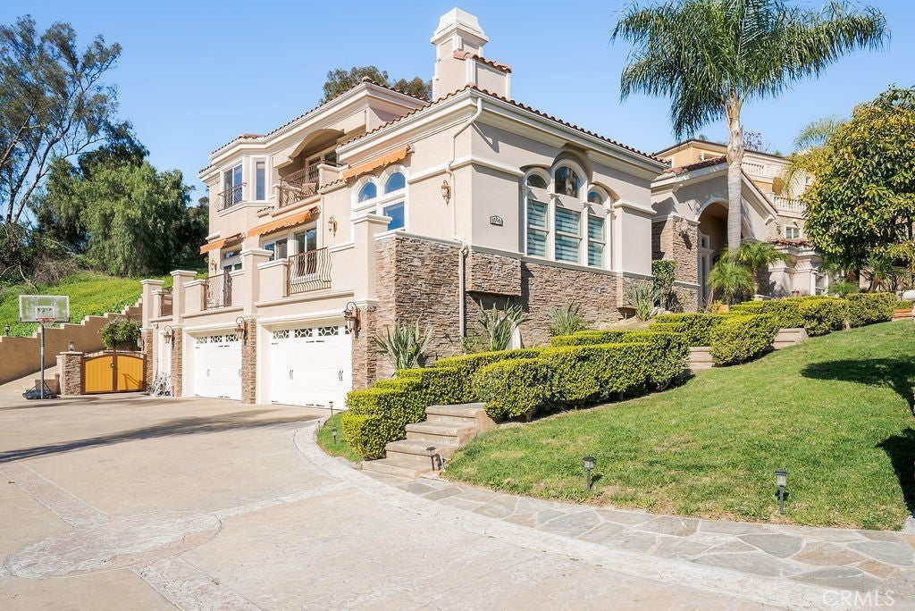 If you’re looking to invest in a stunning luxury home while having complete peace of mind your family is safe and secure while you are gone, look no further. The exclusive Friendly Hill Estates is known for being a prestigious, 24-hour guard gated community. Offering significant privacy and security with controlled access for residents and guests. This impressive custom-built residence offers refined architecture, soaring ceilings, and a thoughtfully designed layout spanning over 5,500 square feet. Boasting 5 spacious bedrooms each complete with in-suite restrooms and walk-in closets, giving everyone in your home the space and privacy they need. As soon as your step into the grand entry you can feel the endless space above you and rooms to get lost in in every direction. The upscale piano room, formal dining room, oversized kitchen and living space all flow together perfectly. Designed for both everyday living and elevated entertaining, the home features multiple fireplaces, expansive balconies, and inspiring views of city lights, rolling hills, and coastal sunsets. It is easy to get lost starring at the ocean and Catalina Island on a clear day. A chef-inspired kitchen anchors the main living area with high-end appliances, custom cabinetry, a massive island with seating, and seamless flow into the surrounding entertaining areas. The primary suite is a large private retreat with a fireplace, spa-like bath, steam shower, walk-in closet, and balcony overlooking the horizon. As you walk the only full 360 degree yard in the neighborhood you can stroll up to your vantage point gazebo and experience a quiet peaceful moment or maybe start your day with some yoga surrounded by nature. An oversized driveway accommodating 10+ vehicles, paired with an expansive courtyard, provides an impressive setting for entertaining and hosting large gatherings. For those seeking a home with a pool, the spacious half-acre lot offers multiple opportunities to design and build a custom pool. The grounds are thoughtfully landscaped with mature fruit trees, terraced gardens, reinforced retaining walls and tranquil outdoor spaces that provide exceptional privacy and a peaceful setting. We all know pictures don’t do justice. Come feel the hottest listing in Friendly Hills for yourself. Let security up front know you’re here to see the masterpiece on Aurora Crest. Start your year with nothing less than the best!