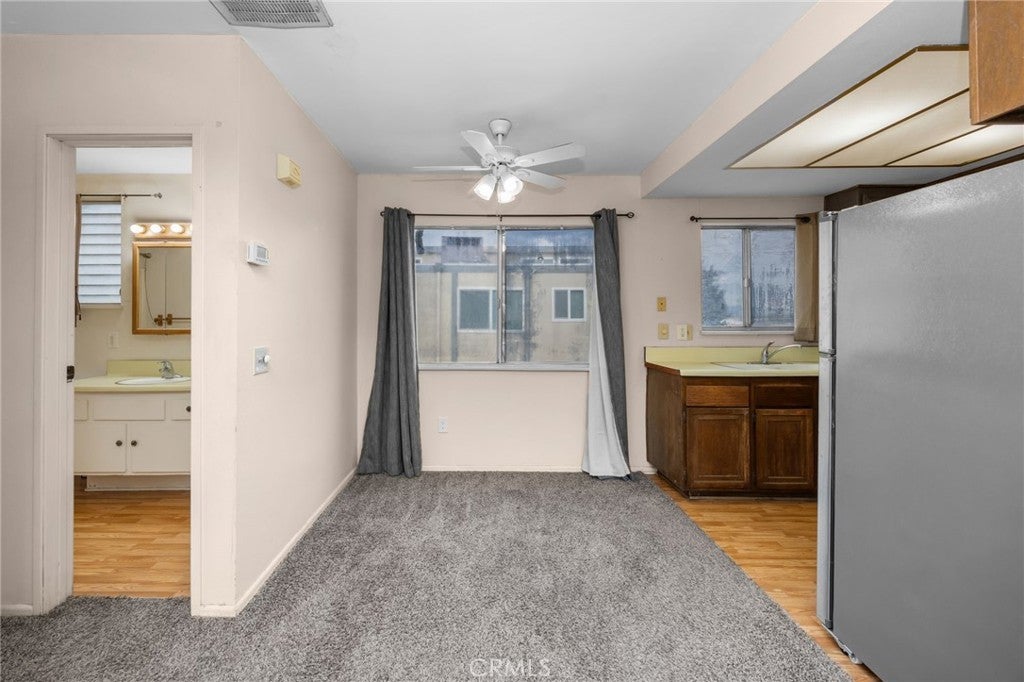 Welcome Home – Your New Beginning Awaits! Step into this charming upstairs corner condo, offering exceptional privacy and abundant natural light. This home is the perfect opportunity for anyone ready to become a homeowner and dream big! Featuring: A spacious floor plan with a comfortable living area and generously sized bedroom, you'll immediately feel the warmth and potential this home offers. The kitchen provides ample cabinet space, and the bathroom includes a relaxing bathtub—a great way to unwind after a long day. Additional highlights include: Private 1-car garage, right below the unit. Washer & dryer hookups inside the garage, Washer, dryer, and refrigerator included, Carpet in living room and bedroom, Ceiling fan, central air & heating. HOA dues are very low and include water and trash services. Located in a desirable area—close to shopping, restaurants, and easy access to the 210 freeway—this condo is an ideal starter home for someone ready to take the next step toward ownership and a brighter future. Don’t miss this opportunity! Schedule your private showing today.