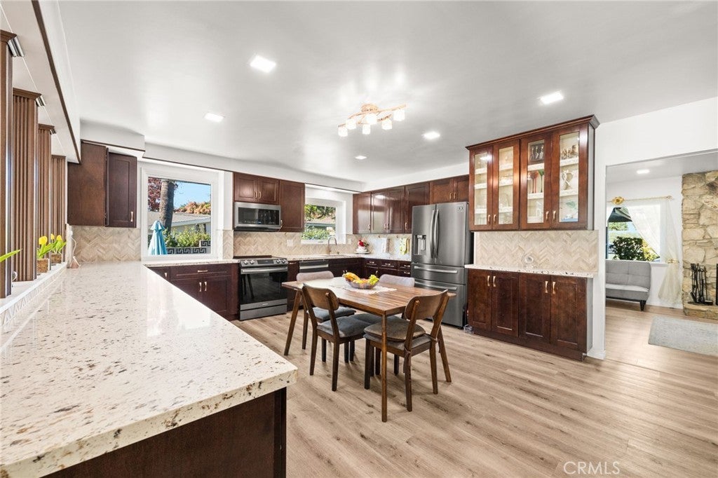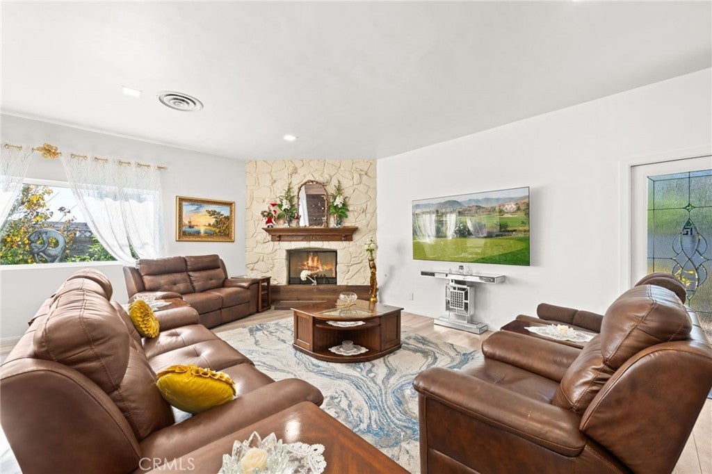 Welcome to this beautifully remodeled single-story home located in the highly sought-after city of Bradbury, where comfort, privacy, and community come together. This 4-bedroom, 2-bathroom residence offers a bright, open layout designed for modern family living and effortless entertaining. The home features a welcoming living room with a classic fireplace as well as a spacious family room with a second fireplace, creating multiple areas to gather and relax. The family room flows into a designated dining area and includes a built-in wine rack, making it ideal for family dinners and special occasions. Just off the family room, a generously sized covered patio provides the perfect space to enjoy the outdoors year-round, whether relaxing or entertaining. The updated kitchen is equipped with granite countertops, ample prep space, and a modern electric range, blending style with everyday functionality. Recent upgrades include updated electrical and plumbing systems and a newer air conditioning system, offering peace of mind and year-round comfort. Outside, the thoughtfully landscaped yard is surrounded by mature trees, offering a sense of tranquility and an abundance of local wildlife—creating a true retreat-like setting. Located in a quiet, family-friendly neighborhood close to top-rated schools, shopping, and dining, with convenient access to the 210 and 605 freeways, this Bradbury home delivers the perfect balance of serene living and everyday convenience. This is a must see!