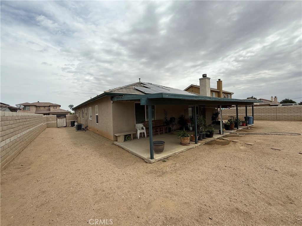 Welcome to this stunning 4-bedroom, 3-bathroom home, perfectly situated on a spacious 10,950 sq. ft. lot. Built in 2004, this 2,065 sq. ft. home offers a fantastic open-concept layout that's ideal for modern living. Step inside and discover a bright, inviting living space that flows seamlessly into a cozy breakfast nook, perfect for casual meals or morning coffee. The main part of the house includes three bedrooms, with the impressive master suite as a true retreat. The master bedroom features a large walk-in closet and a luxurious en-suite bathroom with a separate shower and a soaking tub. One of the unique features of this property is the detached fourth bedroom with its own private bathroom. This offers a private space for guests, a home office, a gym, or whatever you need! The home's exterior is just as appealing. The front yard is low-maintenance, giving you more time to enjoy life. House is equipped with a water filtration system. The large backyard is a true entertainer's paradise, offering plenty of space for outdoor gatherings, gardening, or just relaxing in the sun. This home is also equipped with leased solar panels, which can help reduce your energy costs. Located in a prime Victorville neighborhood, you'll be just minutes away from freeways, schools, and a variety of shopping centers. This home combines comfort, convenience, and privacy in a highly sought-after location. Don't miss out—this gem won't last long!