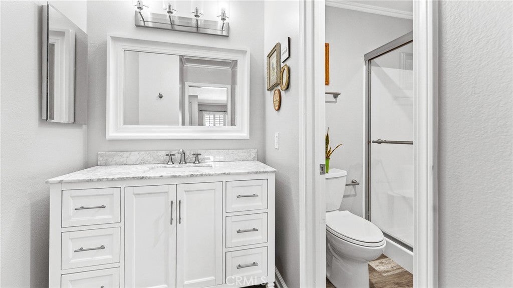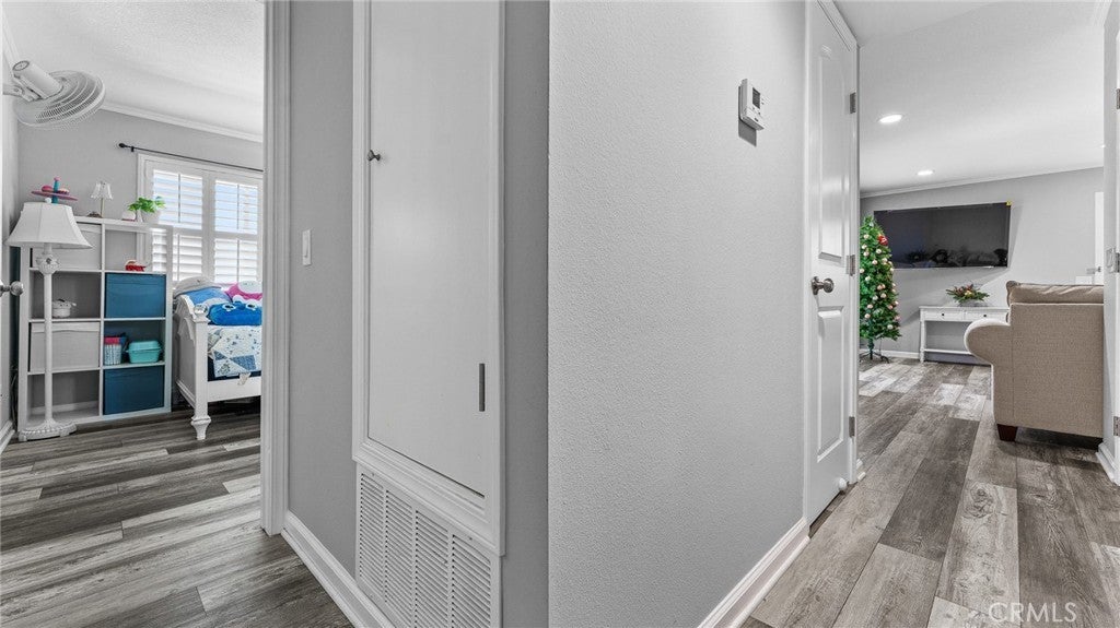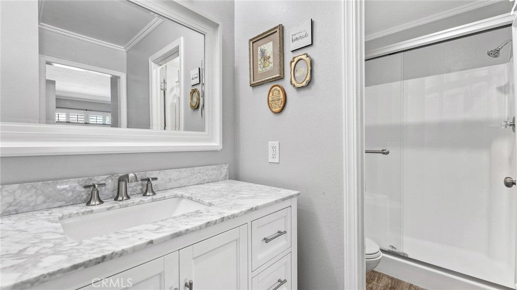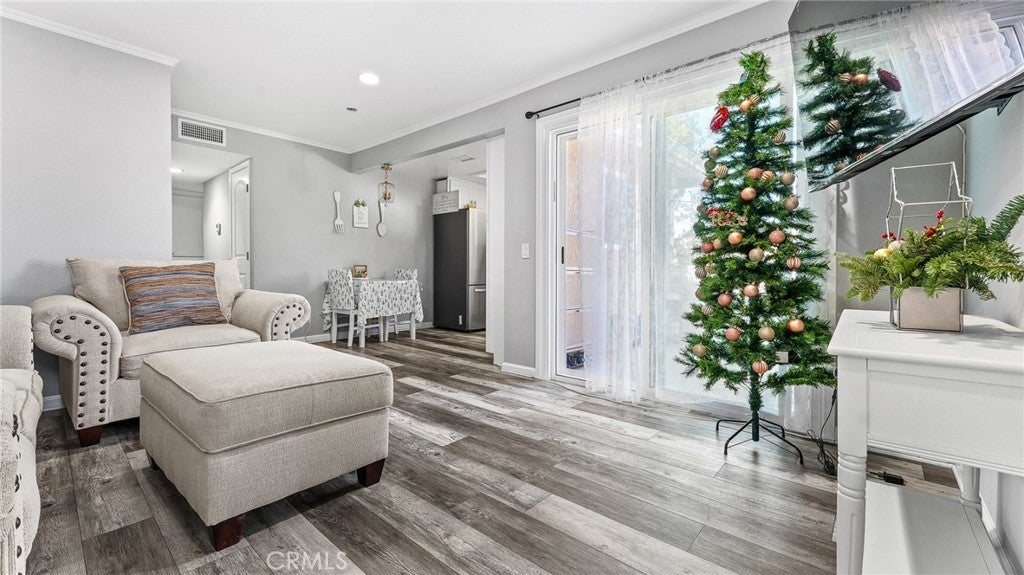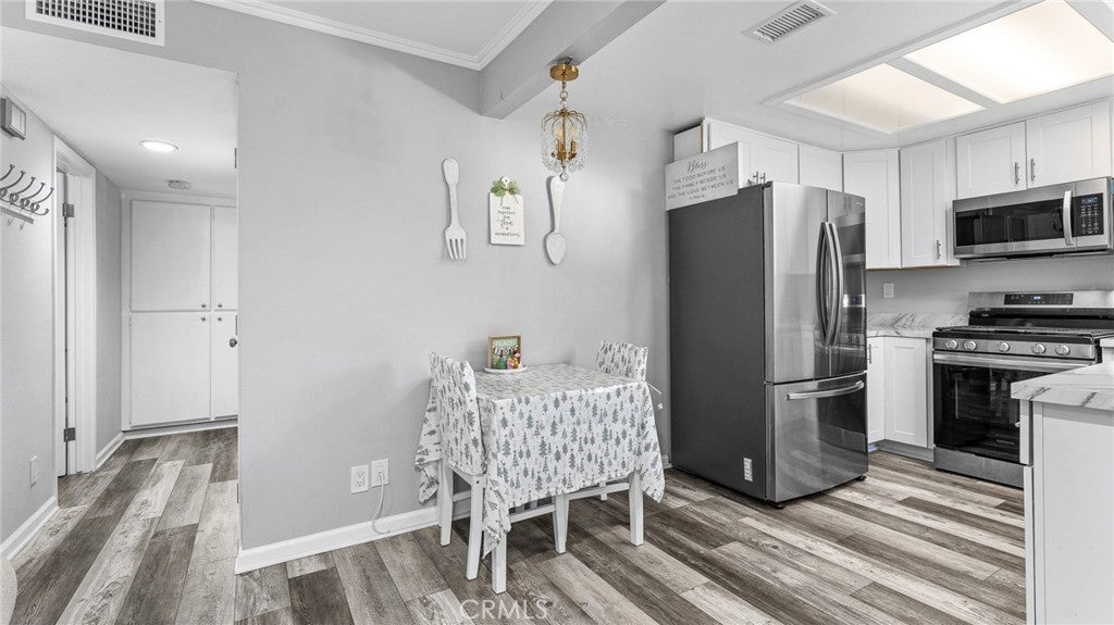 Beautiful move in ready condo in the heart of Simi Valley, this unit has been remodeled and offers open concept layout. It is an upstairs unit all on one level with two bedrooms and two full bathrooms. The Kitchen is remodeled with white cabinets, upgraded Quartz countertops and stainless steel appliances. There is also a large pantry for additional storage. The primary ensuite has dual pane windows and plantation shutters with walking closet, Bath has a vanity, with upgraded mirror, lighting and updated hardware. The second spacious bedroom also has dual pane window with plantation shutters and mirrored wardrobe doors. The second bathroom has vanity, mirror, lighting and hardware. Floors have been upgraded with luxury wood like vinyl. Recessed Lights throughout, large balcony off of the living room for outdoor living, and a separate two car garage. HOA Amenities include a large pool and spa and grass areas around the community. This property is adjacent to the Arroyo Simi Greenway and Bike Path for outdoor recreation. In addition to the modern farmhouse design, this property also offers central HVAC system and updated Water Heater