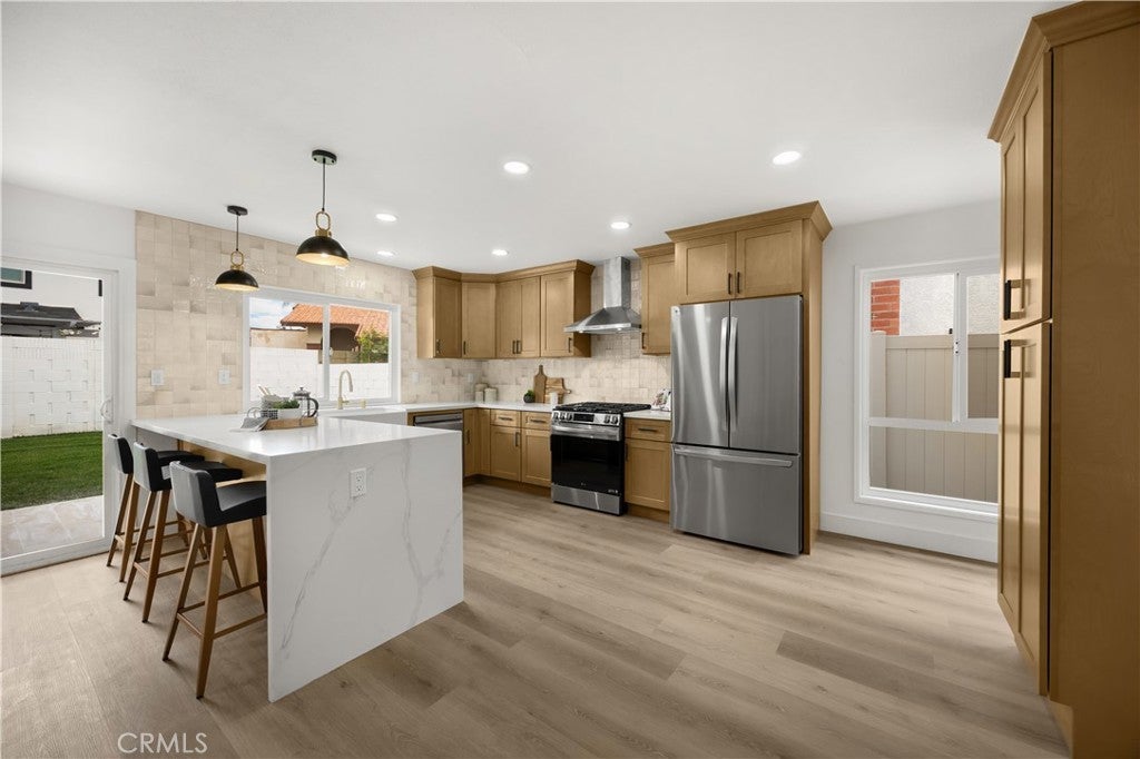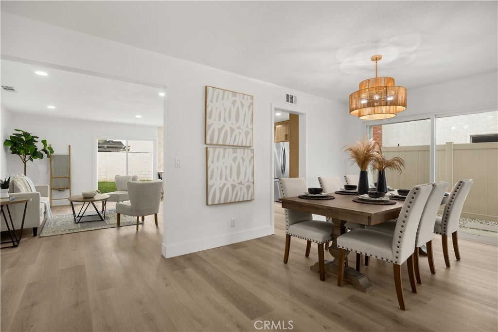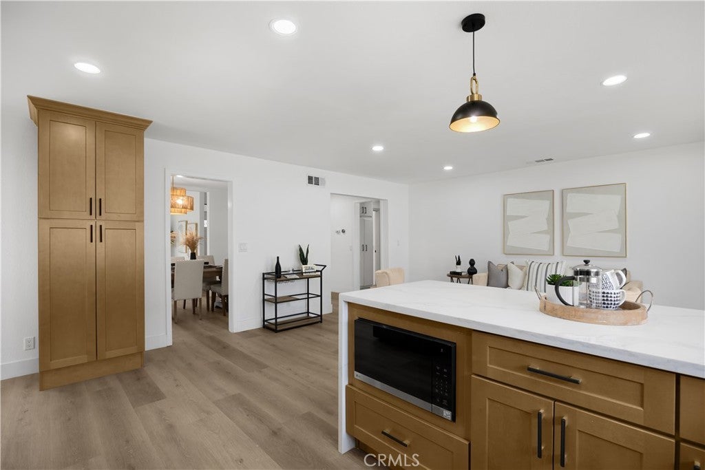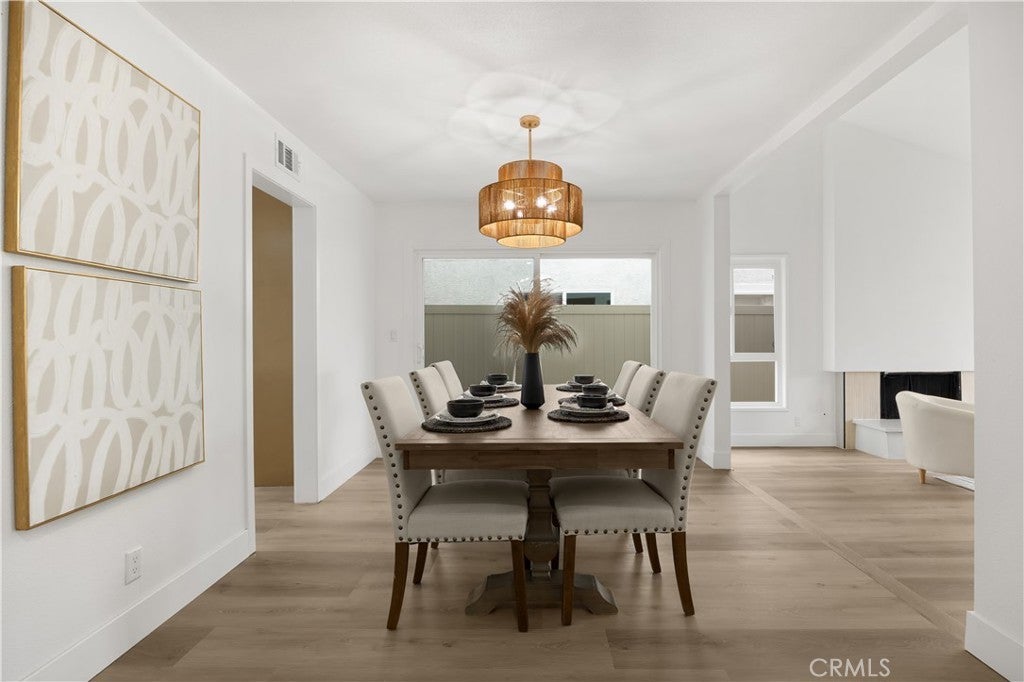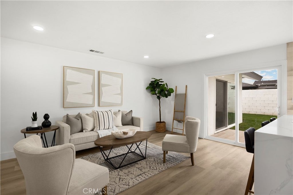 Embrace refined coastal living in this exquisitely renovated single-level home, set within the highly sought-after College Park East neighborhood of Seal Beach and the award-winning Los Alamitos School District. Spanning over 2,000 square feet, this beautifully reimagined residence offers four bedrooms and two fully remodeled bathrooms, blending elevated design with everyday functionality. A warm boho-coastal aesthetic welcomes you inside, where white-oak inspired luxury vinyl plank flooring flows throughout, anchoring the home with timeless sophistication. The living space is positioned around an elegant fireplace with sitting area, accented by a striking fluted tile backdrop that adds texture and architectural interest. The heart of the home is a stunning chef’s kitchen, designed to impress and perform, featuring wood cabinetry, stainless steel appliances, quartz countertops and a waterfall-edged peninsula, designer tile backsplash, and a farmhouse sink. Sliding glass doors extend the living experience outdoors, opening to a wood-look tiled patio and a lush, grassy backyard ideal for entertaining, relaxing, or play. Thoughtful upgrades continue throughout the home, including new recessed lighting, new designer light fixtures, and ceiling fans in all four bedrooms. The primary suite is a true retreat, complete with a walk-in closet and a ensuite bathroom featuring an oak toned vanity and a frameless glass-enclosed shower with modern, high-end finishes. The hall bathroom is equally refined, offering dual sinks, a wood vanity, and a fully tiled bath enclosure. Additional highlights include dual-pane windows throughout, upgraded electrical with a 200-amp panel, a solar panel system for significantly reduced energy costs, upgraded plumbing, a brand-new HVAC system with smart thermostat, new water heater, a new garage door and motor, a new sprinkler system, and fresh sod. Perfectly positioned adjacent to Heather Park, with tennis courts and playgrounds, College Park East also features two additional neighborhood parks with basketball courts and play areas. Enjoy close proximity to the Seal Beach Tennis & Pickleball Center, Old Ranch Country Club, Old Town Seal Beach dining, major freeway access via the 405, 605, and 22, and the iconic Seal Beach Pier and shoreline. This is the turnkey home buyers wait for. Single-level, beautifully remodeled, energy-efficient, and located in one of Seal Beach’s most desirable neighborhoods. Just in time for spring.