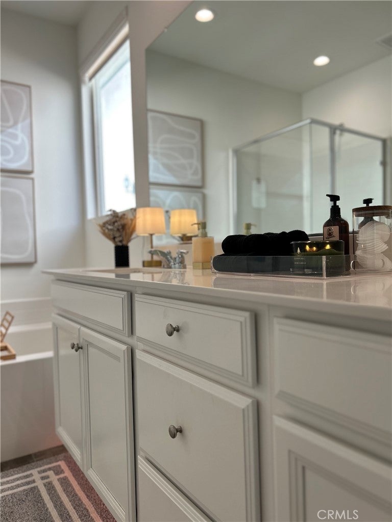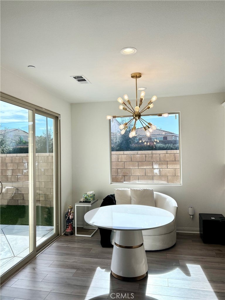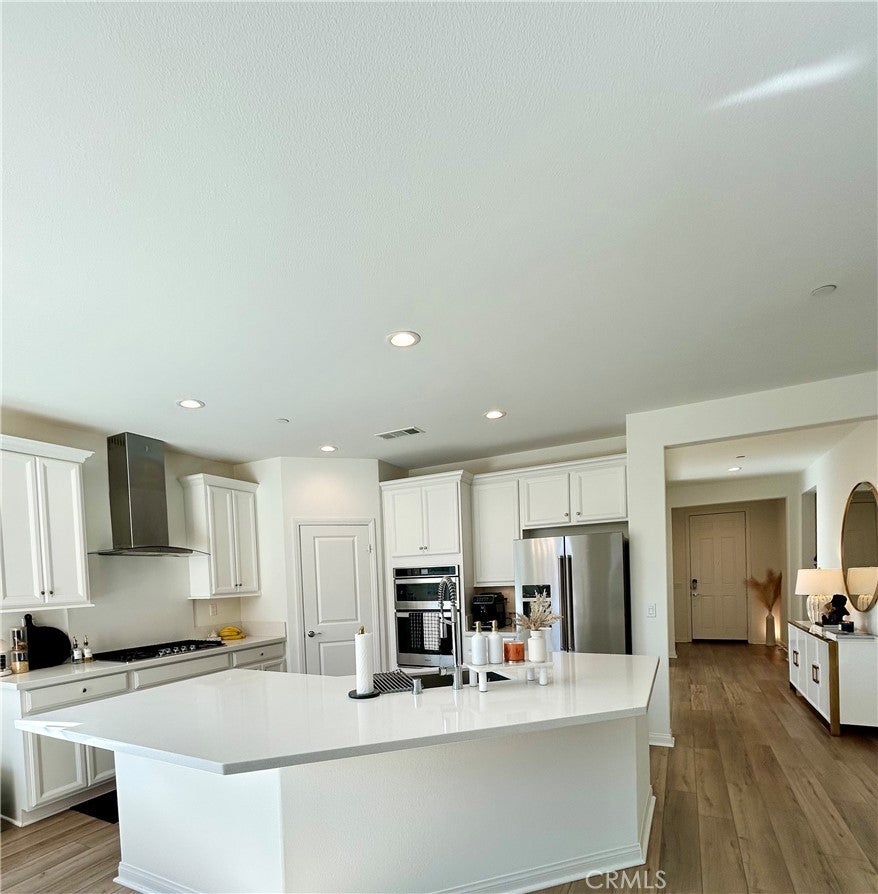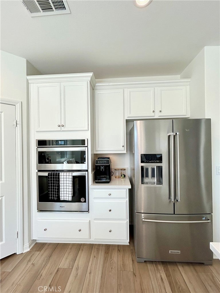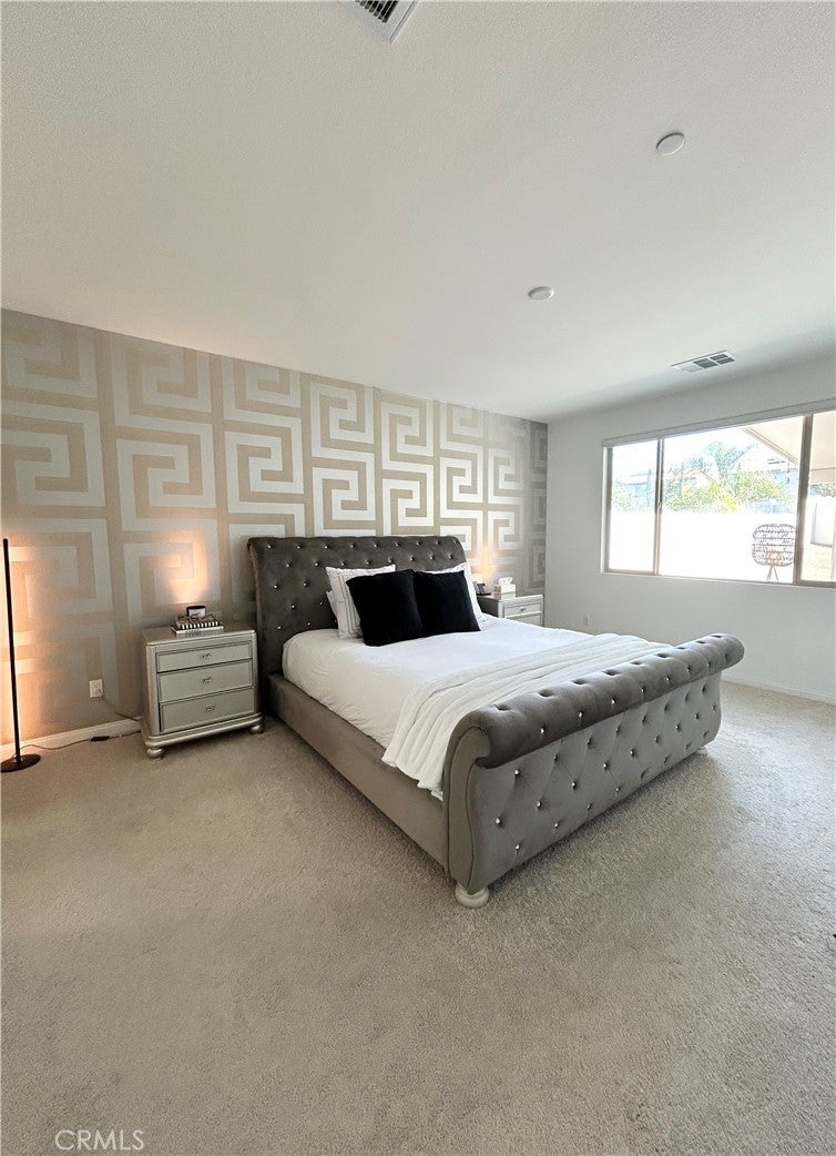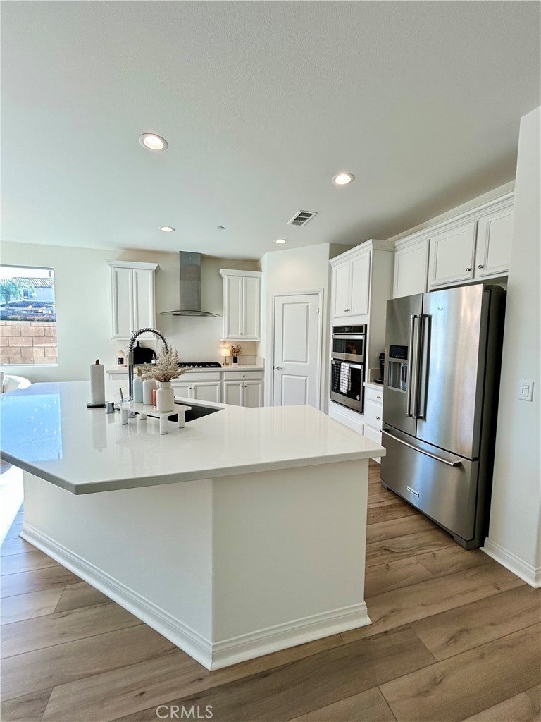 Welcome to this exquisitely upgraded 3-bedroom, 2-bath residence offering just under 2,000 square feet of thoughtfully designed living space in the prestigious Spencer’s Crossing community. Surrounded by scenic hiking trails, beautifully maintained parks, and outdoor recreation. Upon entering, you’re greeted by elegant luxury vinyl flooring that flows seamlessly through the main living areas, while the bedrooms feature plush carpeting for ultimate comfort. The open-concept gourmet kitchen is a standout, showcasing upgraded countertops, a Whirlpool 36-inch cooktop oven, an oversized designer sink with a MOEN faucet, and a KitchenAid refrigerator—perfectly appointed for both elevated entertaining and everyday living. additional upscale features include a built-in surround sound system in the living room and a soft water plumbing loop for enhanced efficiency and comfort. Ideally located just minutes from Old Town Temecula, renowned Wine Country, premier shopping and dining, and Pechanga Resort & Casino, this home offers both luxury and convenience. Home also features a large backyard with an existing patio, providing the perfect foundation to imagine and build your ideal outdoor retreat.