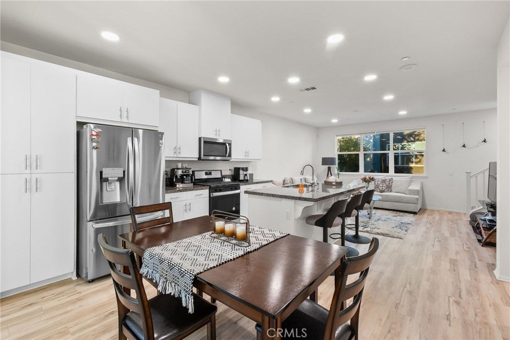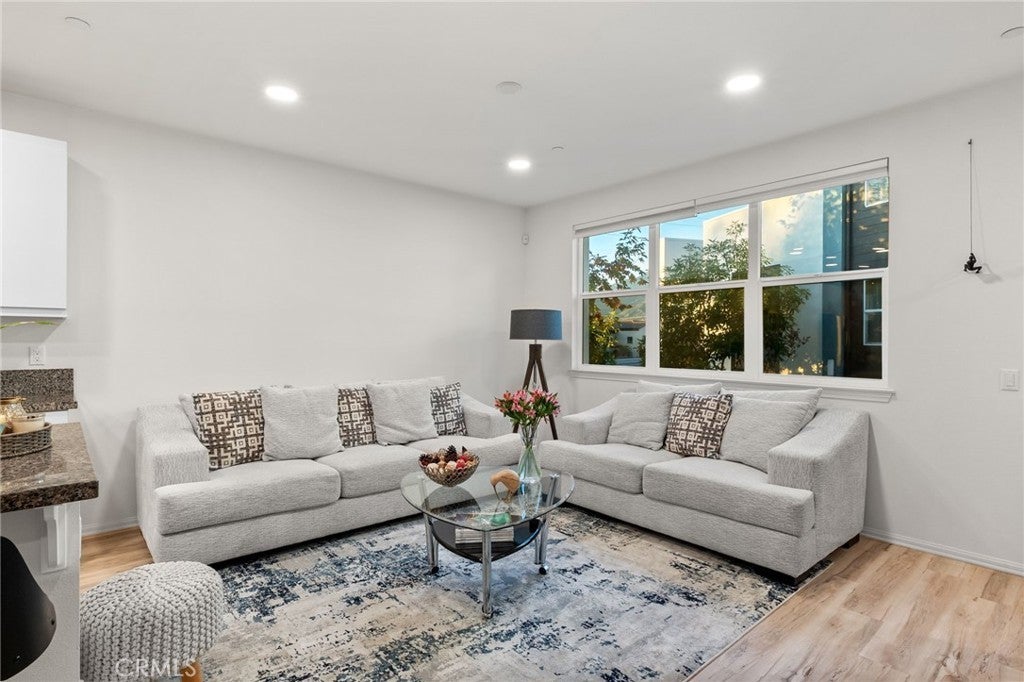 Elegant, turnkey three-story condominium offering modern design, comfort, and thoughtful functionality in the heart of Rancho Cucamonga. This beautifully maintained residence is truly move-in ready and designed for today’s lifestyle. The main living level features an open-concept layout accented by oak wood laminate flooring, recessed lighting, and abundant natural light. The chef-inspired kitchen showcases granite countertops, a granite kitchen island, and new stainless steel appliances, including dishwasher, microwave, and refrigerator—perfect for entertaining and everyday living. Adjacent to the living area is a versatile open loft/nook, ideal for a home office, den, or creative space. A convenient half bathroom completes the main level, along with access to a private balcony. Upstairs, all bedrooms are thoughtfully situated together. The spacious primary suite features a walk-in closet and a beautifully appointed en-suite bath with dual vanities. Secondary bedrooms are generously sized and share a full bathroom. The laundry area with washer and dryer included is conveniently located on the same level as the bedrooms. Additional highlights include a two-car attached garage with direct access and extra storage space. This exceptional home includes all major appliances and is impeccably maintained, offering a seamless and stress-free transition for the next owner. Located just minutes from shopping, dining, schools, and easy freeway access. Don’t miss this fantastic opportunity to own a beautiful home in a prime location!