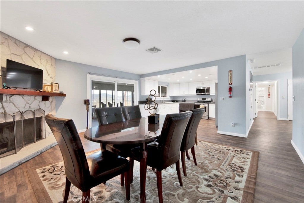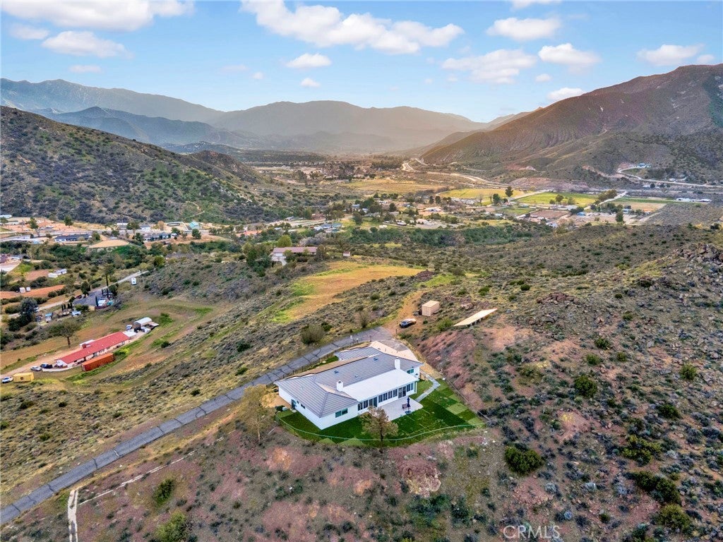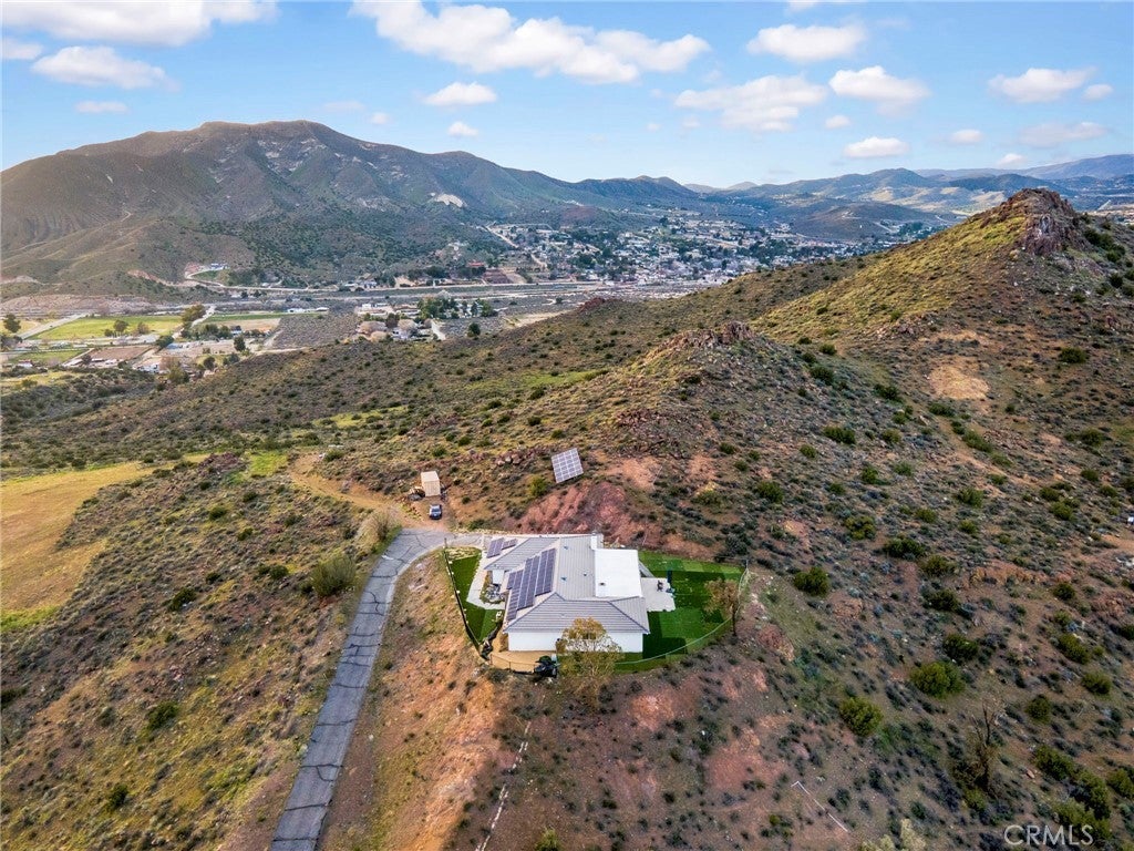 Experience hilltop living in this 4-bedroom, 3-bath single-story home on over 9 private acres in Country Way Estates. The property features sweeping views from every angle, room for horses, RV parking, and an oversized attached garage. The kitchen has been updated with quartz counters, stainless appliances, and a beverage fridge, flowing seamlessly to the family room. The primary suite includes its own fireplace, spa tub, and direct patio access. A 600 sq ft patio addition provides extra living space with seating and an above-ground spa. Additional highlights include county water, natural gas, owner-owned solar, whole-house generator, water filtration, ceiling fans, new carpet, and spacious, versatile bedrooms. Enjoy sunsets, serene privacy, and endless possibilities—this Acton property is ready for your lifestyle.