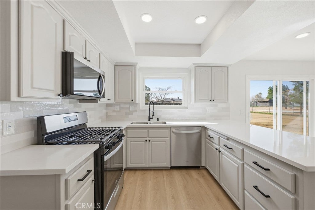 Beautifully Updated Home on Expansive Corner Lot in Prime Apple Valley Location Welcome to 22267 Gayhead Rd, a thoughtfully remodeled 3-bedroom, 2-bath home situated on a generous 21,000 sq ft corner lot in Apple Valley’s desirable 92307 zip code. This well-maintained property offers a functional layout, modern upgrades, and ample outdoor space. The open-concept floor plan is filled with natural light and features a spacious living room highlighted by a cozy fireplace that flows into the dining area and updated kitchen. The kitchen showcases new quartz countertops, contemporary backsplash, and brand-new stainless steel appliances, creating a fresh and inviting space for everyday living. Recent upgrades include new laminate flooring throughout, new carpet in the bedrooms, and updated lighting fixtures. The primary bedroom offers a walk-in closet and a remodeled en-suite bathroom for added comfort and privacy. The expansive backyard provides endless possibilities, with room for a pool, RV parking, or future customization. Located in a quiet neighborhood with wide streets and convenient access to schools, parks, and shopping, this home offers both space and functionality in a desirable setting. A great opportunity to own a move-in-ready home with room to grow.