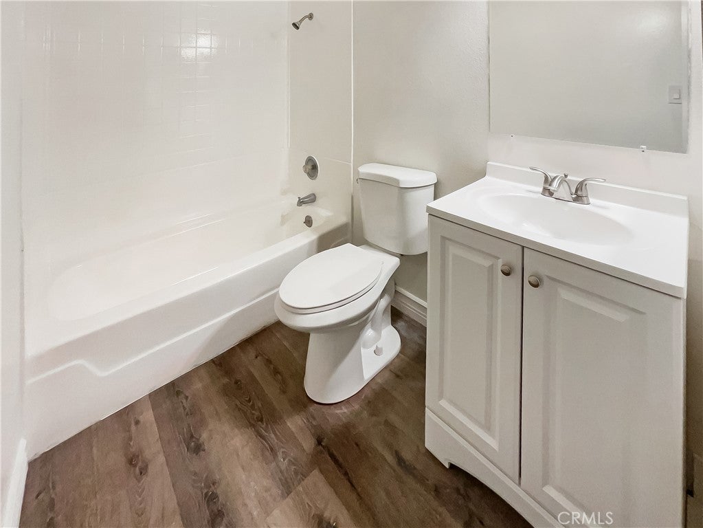 This light and bright condo in the La Veta Monterey community features a freshly updated interior with an open living and dining area, wide-plank wood-style flooring throughout, and large windows that fill the space with natural light. The clean, white kitchen offers ample cabinetry, generous counter space, and a functional layout ideal for everyday living. The bathroom has been refreshed with a white vanity, modern fixtures, and a shower-tub combination. Residents enjoy resort-style amenities including a gated pool and spa area with lounge seating, mature landscaping, and community facilities. Conveniently located near Old Towne Orange, Chapman University, shopping, dining, and major freeways, this home offers comfortable, low-maintenance living in a prime Orange location.