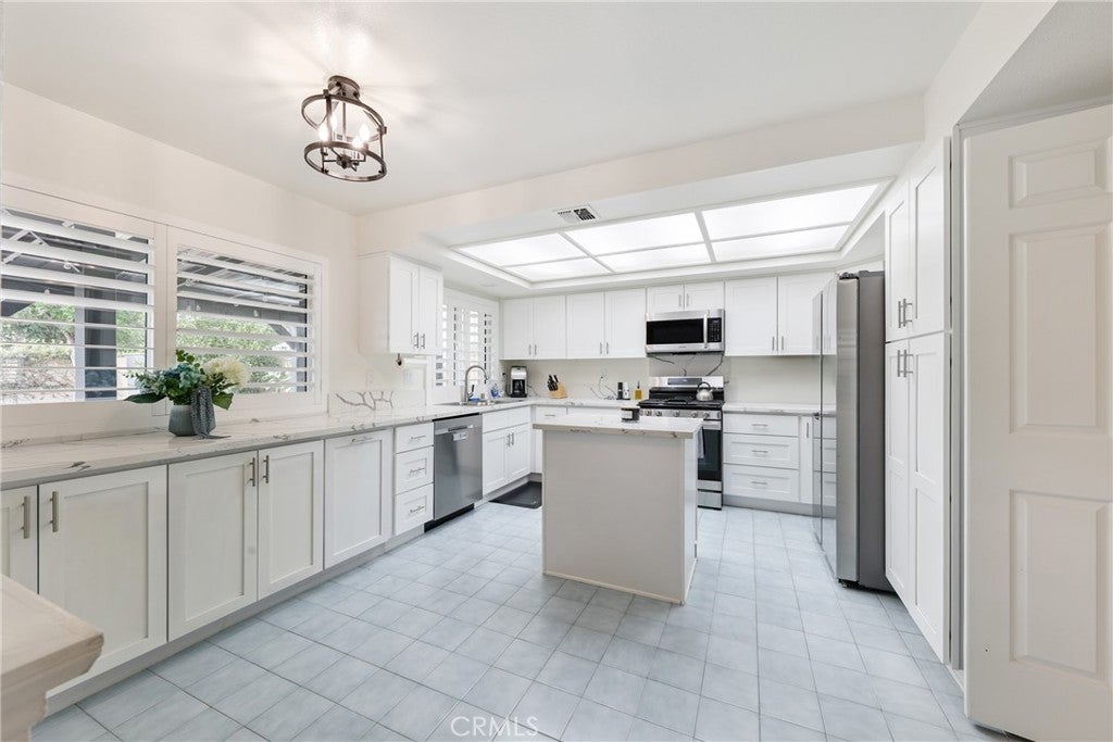 Come and see this stunning five-bedroom, three-bathroom home offering over 2,700 square feet of beautifully updated living space. Perfectly designed for comfort and functionality, this home is truly move-in ready and ideal for today’s modern lifestyle. Step inside to a bright and spacious layout featuring a renovated kitchen complete with newer stainless steel Samsung appliances, new cabinetry, and elegant Quartz countertops. Two of the three bathrooms have been completely remodeled, showcasing modern fixtures, stylish vanities, and matching Quartz finishes for a cohesive designer look. The thoughtfully designed floor plan includes one bedroom and a full bath downstairs—perfect for guests, a home office, or private workspace. The spacious living room opens to a formal dining area, while the cozy family room—complete with a beautiful fireplace—flows seamlessly into the sunny kitchen with a built in Island. Upstairs, the oversized primary suite features a walk-in closet and a luxurious private bath with a separate tub and shower. As if that weren't enough, energy efficiency and comfort abound with newer dualpaned windows with custom shutters, a 2-year-old HVAC system, and a 3-year-old water heater. The home also features an upgraded electrical panel, a newer roof for added peace of mind. Thousands have been spent to prepare this home for its new owners. With its blend of modern upgrades, generous space, and a warm, inviting feel, this property truly stands out as a must-see.