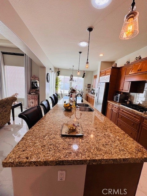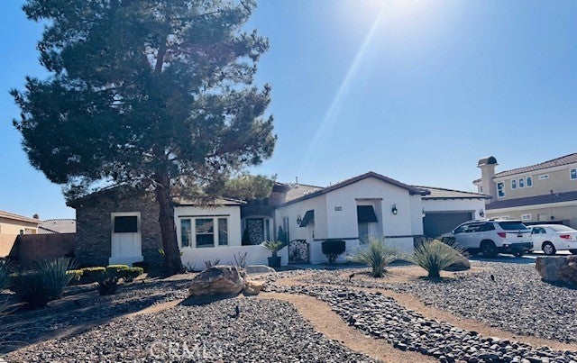 Welcome to this Master piece home located on the "STONEBROOK ESTATES" gated community in Apple Valley a luxurious developed area with all the fancy amenities including swimming pool, pick ball courts, Courthouse, etc. Property welcomes you with a cozy courtyard that follows to a giant iron designed door that opens up to a foyer, to your right you will find a bedroom or a potential office and to your left you would find a formal dinning area with sky light. Kitchen and family room have an open concept full or natural light. Kitchen indeed is every chef's dream along with all Viking appliances (double oven, microwave, dishwasher, 6 burner cooktop) and of course a walk in pantry. On the East wing on the house you will find the two more bedrooms and a shared bathroom plus a mini master suite with its own bathroom and sliding door that opens to the back yard to a luxurious back yard, also on the west wind you will find the access to garage and extra big laundry room. The big suite at West Wing is indeed huge, full of natural light and huge space for your own entertainment, walk in closet is a dream for a fashionista with tons of spacious custom closet cabinets. Back yard is a Miami dream back yard modern and fancy with almost finished pool. Easy and low maintenance luxurious back yard that has an all around planters, also includes a sand square to add some green or to plant some vegetables. Solar panels are paid OFF, TESLA CHARGE inlcuded as well. Security cameras with monitor, this house is not only spacious and fancy but cozy and relaxing.