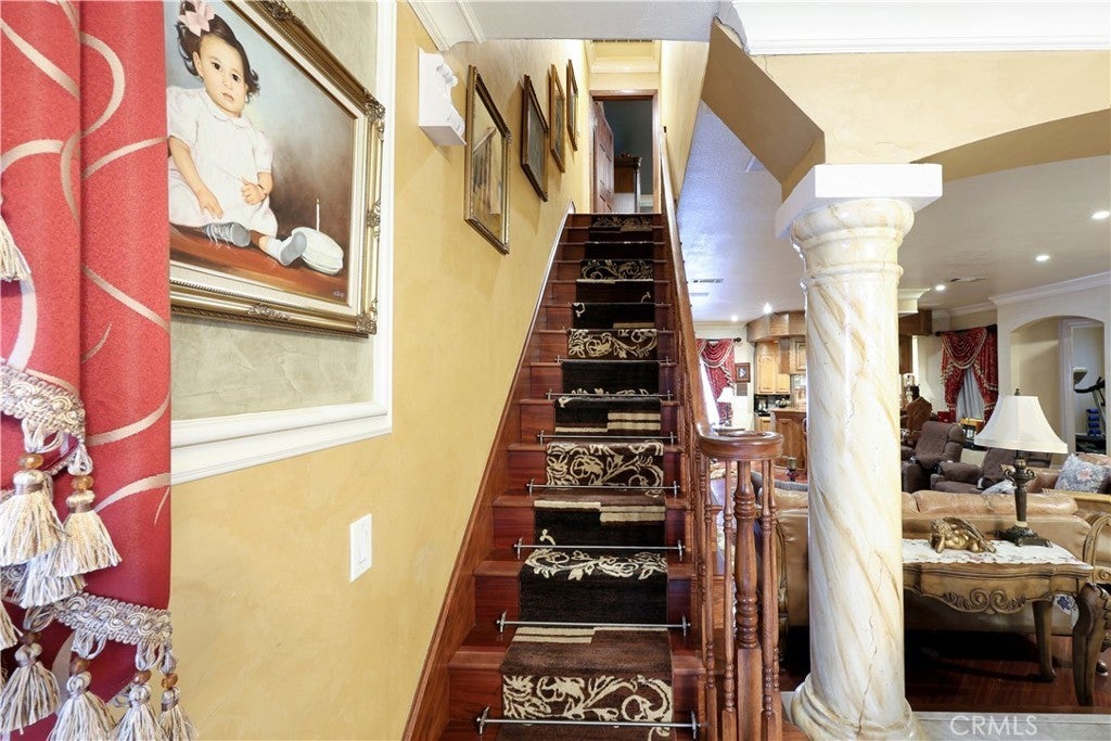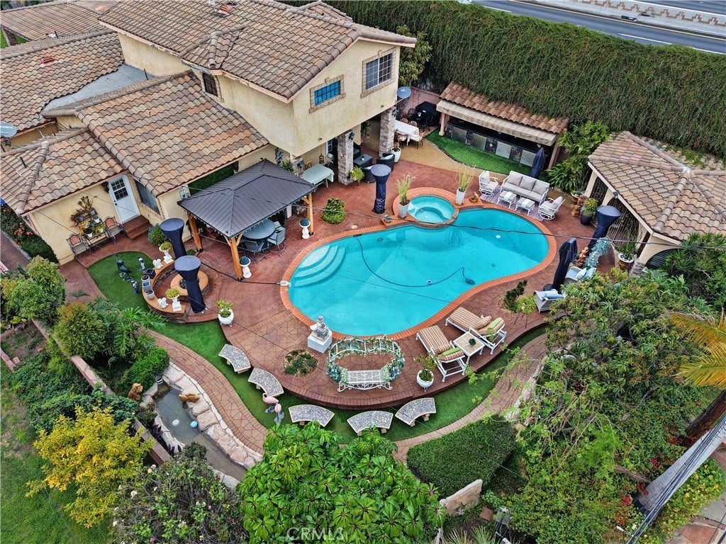 Located in the highly desirable North Downey neighborhood, this spacious 5 bedroom, 4 bathroom home blends elegance, comfort, and modern design. The home has impressive curb appeal with a stamped concrete driveway, stucco exterior with stone accents, a sharp tile roof, and a double wrought iron front door. The formal living room with fireplace and formal dining room create the perfect setting for entertaining or large family gatherings, while the family room features a built-in wet bar for relaxing in the evening. The remodeled chef’s kitchen showcases a large center island, premium appliances, high-end cabinetry, and abundant counter space. Top-of-the-line hardwood floors, coved ceilings, and architectural columns enhance the living areas with timeless character and modern sophistication. Upstairs, the expansive primary suite offers a private retreat with a jetted soaking tub, oversized tile shower, and dual walk-in closets. The backyard is truly an entertainer’s dream, complete with a resort-style pool and spa, fire pit, tranquil stream, gazebo, and lush landscaping with privacy trees. An impressive outdoor kitchen includes dual barbecue grills, commercial-grade hood, sink, and bar — ideal for hosting year-round. A rare opportunity to own a beautifully upgraded home on a large lot. This property is located close to the local elementary and middle school, has easy freeway access, and minutes from local restaurants and shopping.