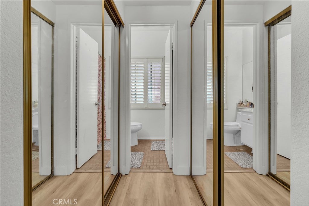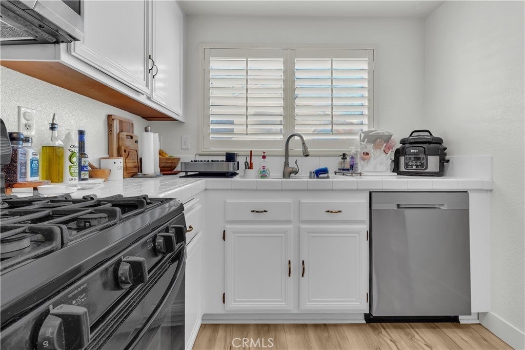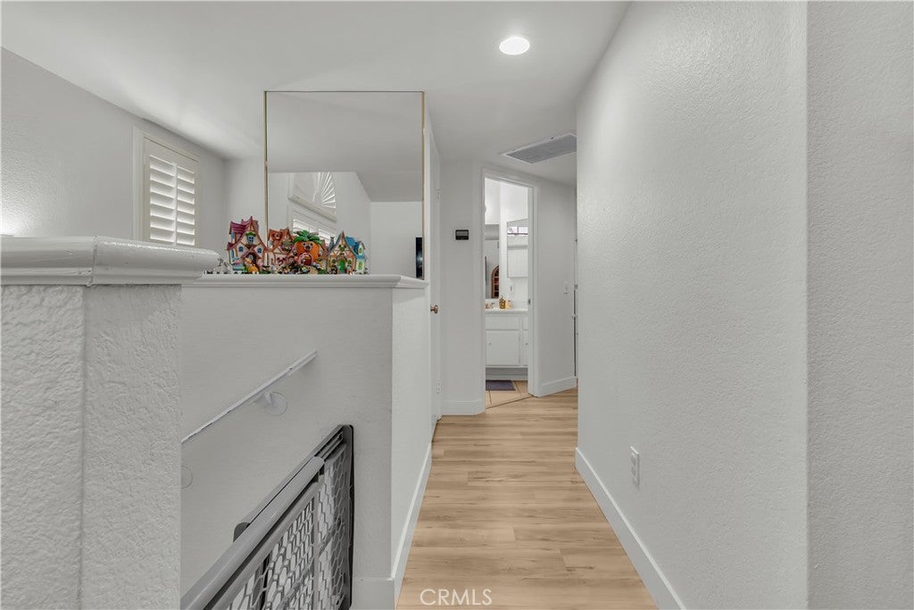 A perfect home move-in ready awaits you. As you enter this well manicured community, you can't help but notice all of the mature landscaping creating several shady green belts throughout the community. Conveniently located near great schools, shopping and the 5 freeway for commuters. Situated towards the back of the community, near ample shaded visitor parking, convenient for all of your guests. As you step into the foyer, you will notice the attached garage to the left and a stairway to the upper living area. The living area is spacious and features a cozy fireplace and nice size dining area. Located off the kitchen and balcony. A great area for entertaining family and friends as well as just hanging out after a long day. Down the hall find a hall bathroom, perfect for guests as well as the smaller bedroom. The master bathroom and master bedroom are a nice size en suite. This home features luxurious vinyl flooring and newer paint, shutters throughout, updated wide baseboards and lots of natural light. The HVAC was replaced in 2020 and the water heater in 2021.