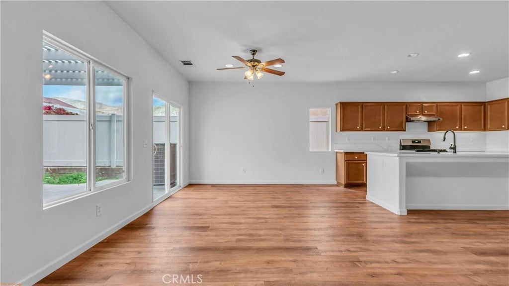 Welcome to this beautifully upgraded 3-bedroom, 2-bath residence nestled within the highly sought-after gated community of Mission Lakes. From the moment you arrive, the home’s excellent curb appeal and drought-tolerant front landscaping set the tone for the quality found throughout. Step inside to soaring cathedral ceilings and rich hardwood-style flooring that create an open, airy ambiance filled with natural light. The expansive open-concept living room seamlessly flows into the kitchen, making the home ideal for both comfortable everyday living and effortless entertaining. A cozy fireplace anchors the living space, adding warmth and charm. The thoughtfully refreshed kitchen features a center island, abundant cabinetry, generous counter space, and brand-new appliances—perfect for the home chef. Fresh interior paint, stylish new countertops, and tastefully updated bathrooms provide a clean, modern feel that today’s buyers will appreciate. Additional highlights include an indoor laundry room, ceiling fans for year-round comfort, and a spacious two-car garage with direct access for added convenience. The private backyard patio offers the perfect setting for morning coffee, evening relaxation, or weekend gatherings. Located behind the gates of desirable Mission Lakes, this move-in ready home delivers the ideal blend of comfort, functionality, and lifestyle appeal.