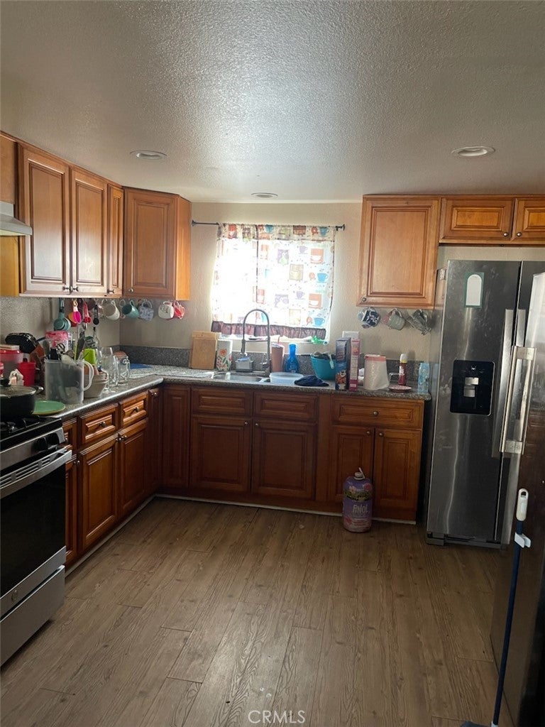 SHORT SALE OPPORTUNITY IN THE CITY OF HESPERIA. Welcome to this affordable, charming corner home. This lovely property features 3 bedrooms and 1 bathroom, with an open-concept layout connecting the kitchen, living room, and dining area, perfect for comfortable living and entertaining. The kitchen boasts granite countertops and ample cabinet space. The bathroom also features a granite countertop and tile flooring. Two of the bedrooms offer laminate wood flooring, while the third bedroom is conveniently located next to the kitchen. It has tile flooring. Enjoy the spacious yard with plenty of room for entertaining, abundant parking, and even RV parking with a septic drain connection. The property also offers two gated entrances,one on the east side and one on the west side of the home for added convenience and accessibility. Centrally located and within walking distance to shopping and dining, this home is a fantastic opportunity you don’t want to miss. Schedule your showing today!
