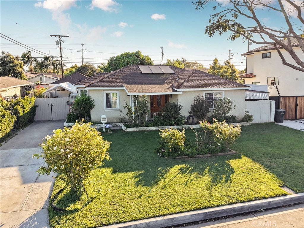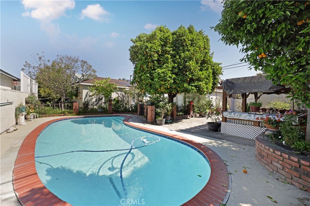 Beautifull 3bedroom pool home in great Downey neighborhood. Close to shopping, schools, dining and freeways. Two car detached garage, Central air, upgraded electrical, copper plumbing, solar panels, newer water heater, newer windows, inside laundry with washer and dryer. Private back yard with many fruit trees, flowers, pergola and shed. Gated, newly replastered pool with new pump and filter system. Cul de sac location.