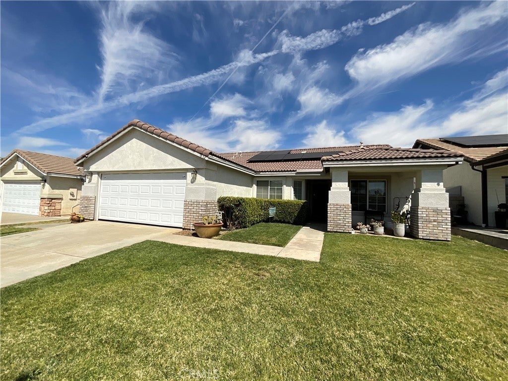 Great single-story home in the French Valley area. This home offers 3 bedroom, 2 bathrooms, spacious living room with fireplace, spacious dining area. Separate laundry room next to kitchen. The spacious primary room offers dual sinks, a separate tub and shower, and a walk-in closet, a comfortable private space. Garage access from the laundry room. The backyard provides room for entertaining, gardening or a future pool. Home comes with low annual HOA. This home is great for a family looking to get out of the city and enjoy the country life. Property is located close to shopping centers, parks and Temecula Wine County!