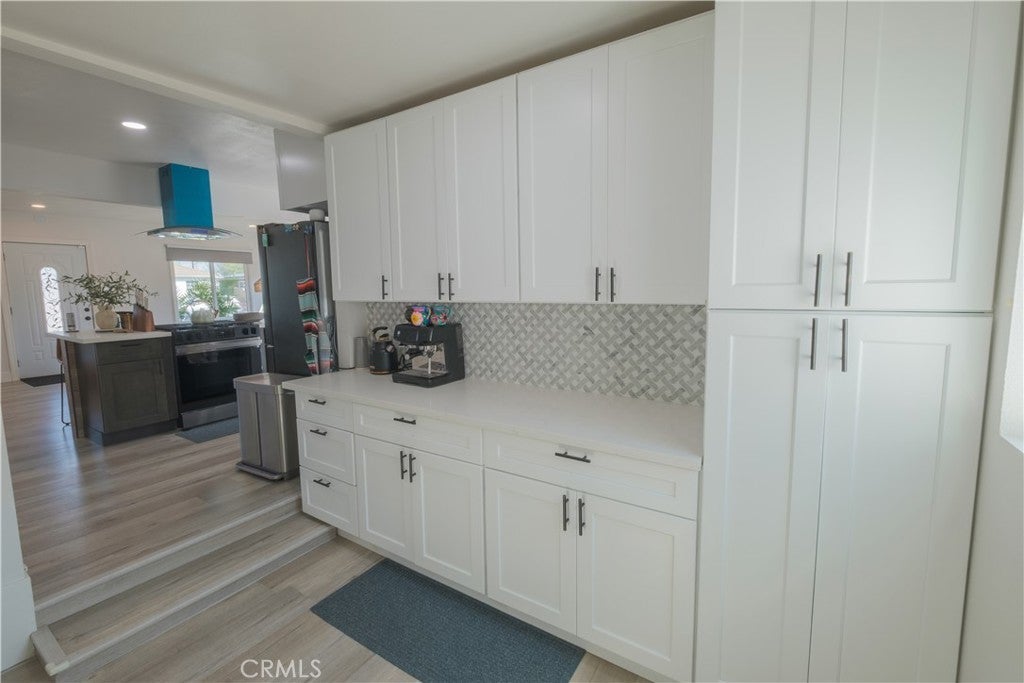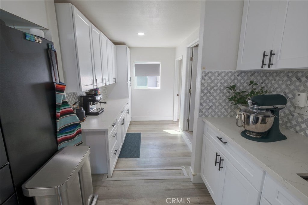 Welcome to this beautifully updated corner home in Bellflower, featuring a detached two-car garage and an oversized bonus room offering an additional 360 sq ft of flexible space—perfect for a home office, gym, or additional storage. This pristine property offers three generous bedrooms and two modern bathrooms, including a spacious primary suite with a large closet. A brand-new roof installed in April 2024 adds both style and peace of mind. The heart of the home is the stunning kitchen, complete with a large island, Italian porcelain tile, Quartz Carrara countertops, and a mosaic backsplash. Ample cabinetry and a pantry provide plenty of storage, making it ideal for both everyday living and entertaining. Recent upgrades include new electrical wiring, fresh interior paint, stylish flooring, and energy-efficient recessed lighting. Additional enhancements throughout the home include a whole-house water softener system and an alkaline drinking water system, adding comfort and convenience to daily living. The attic and basement have been fully renovated, offering improved functionality and added value. The main bathroom features a full tub, a sleek new vanity, and a modern LED anti-fog mirror, while the primary bath offers a walk-through design with a full-size shower and elegant finishes. The versatile bonus room, larger than the garage, provides endless possibilities to suit your lifestyle needs. Enjoy added peace of mind with a built-in surveillance system, as well as practical exterior upgrades including installed gutters and a newly constructed wooden fence that enhances privacy in the spacious backyard. A mature lemon tree adds a charming touch to the outdoor space. Comfort is ensured year-round with a 220v mini-split heat pump in the living room. The front yard is beautifully landscaped and features a custom mailbox, enhancing the home’s curb appeal. Perfectly located near parks, schools, and major Southern California freeways, this home combines convenience, thoughtful upgrades, and modern functionality. Don’t miss your opportunity to own this exceptional property.