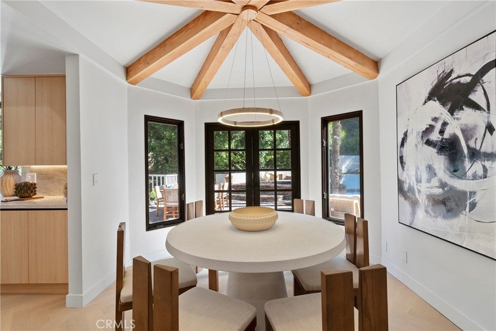 Beamed Ceilings, Balcony, Breakfast Area, Separate/Formal Dining Room, High Ceilings, Open Floorplan, All Bedrooms Up, Bedroom on Main Level, Primary Suite, Wine Cellar, Walk-In Closet(s), Wet Bar