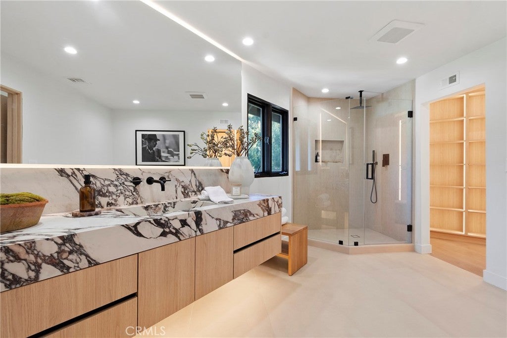 Welcome to Balboa Manor — Encino’s Hidden Jewel and the best price on this desired dead-end street. Discover Balboa Manor, an almost 1 acre luxury retreat and architectural masterpiece nestled within Rancho Estates, Encino’s most coveted enclave. Tucked away on an exclusive cul-de-sac lined with estates owned by Hollywood and sports elite, this residence redefines modern sophistication and California elegance. This completely renovated designer estate is elevated behind a private gated, the nearly 7,000-square-foot estate blends European charm with contemporary grandeur. Inside, natural light dances across soaring ceilings and wide-plank European oak floors, illuminating every detail of refined craftsmanship while enjoying the city and mountain views. The open-concept living spaces flow seamlessly from a designer great room with a statement fireplace to a formal dining area and a chef’s dream kitchen—featuring custom cabinetry, a quartz waterfall island, and professional-grade appliances. Your primary suite is a sanctuary of serenity, complete with a private terrace, boutique-style dressing room, and spa-inspired bath with a soaking tub and rain shower. Outside, a resort-style oasis awaits — a sparkling pool and spa framed by lush greenery and multiple lounge terraces for ultimate privacy and tranquility. Just minutes from Ventura Boulevard’s premier dining, luxury boutiques, and top-rated schools, this retreat embodies the pinnacle of the Encino luxury lifestyle — where sophistication meets sanctuary.